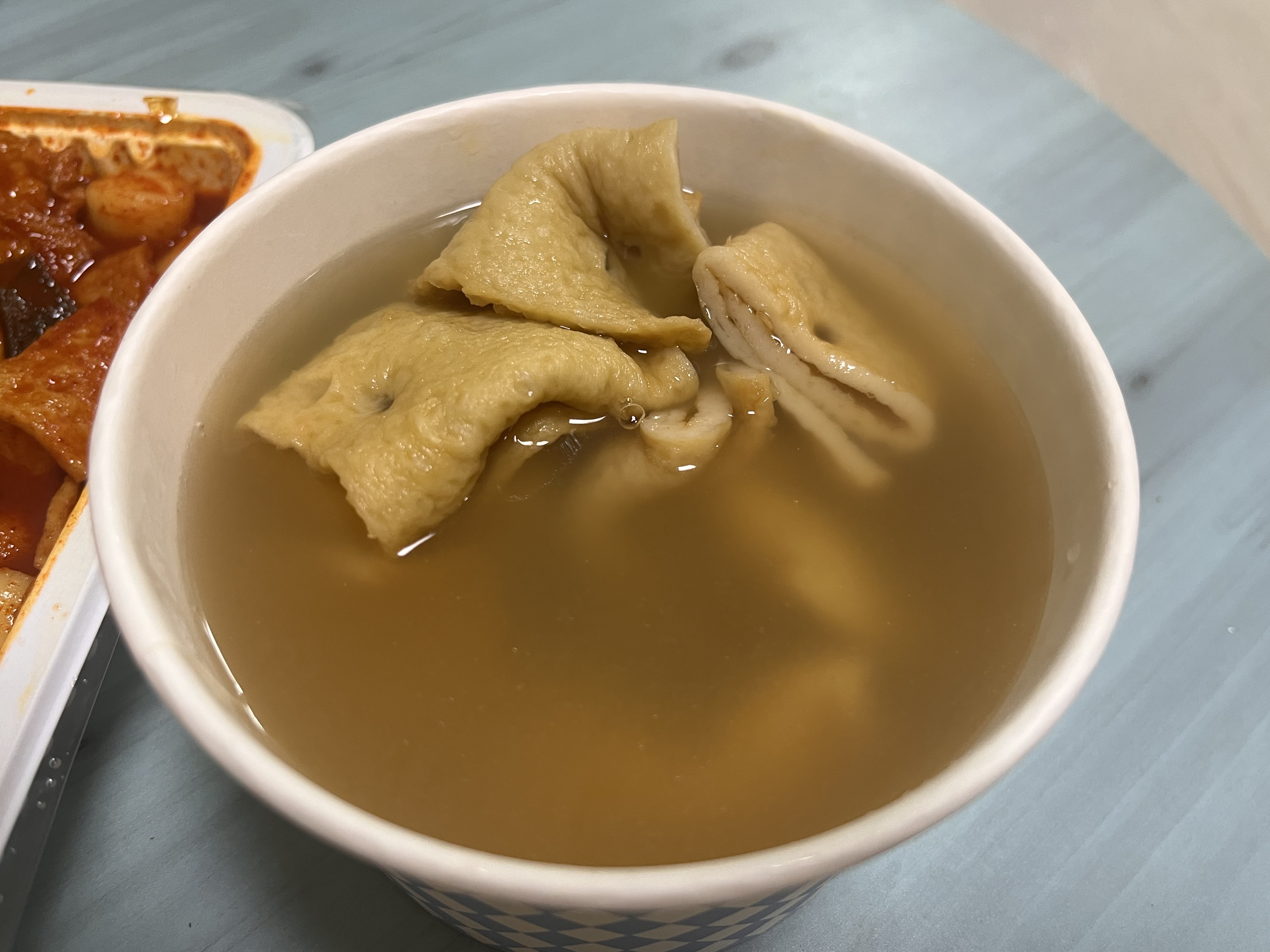 혼자 가면 보통 아저씨께 양해를 구해서 떡볶이를 다 못 먹으니까 반만 달라고 하고, 어묵을 1개에서 2개 정도?