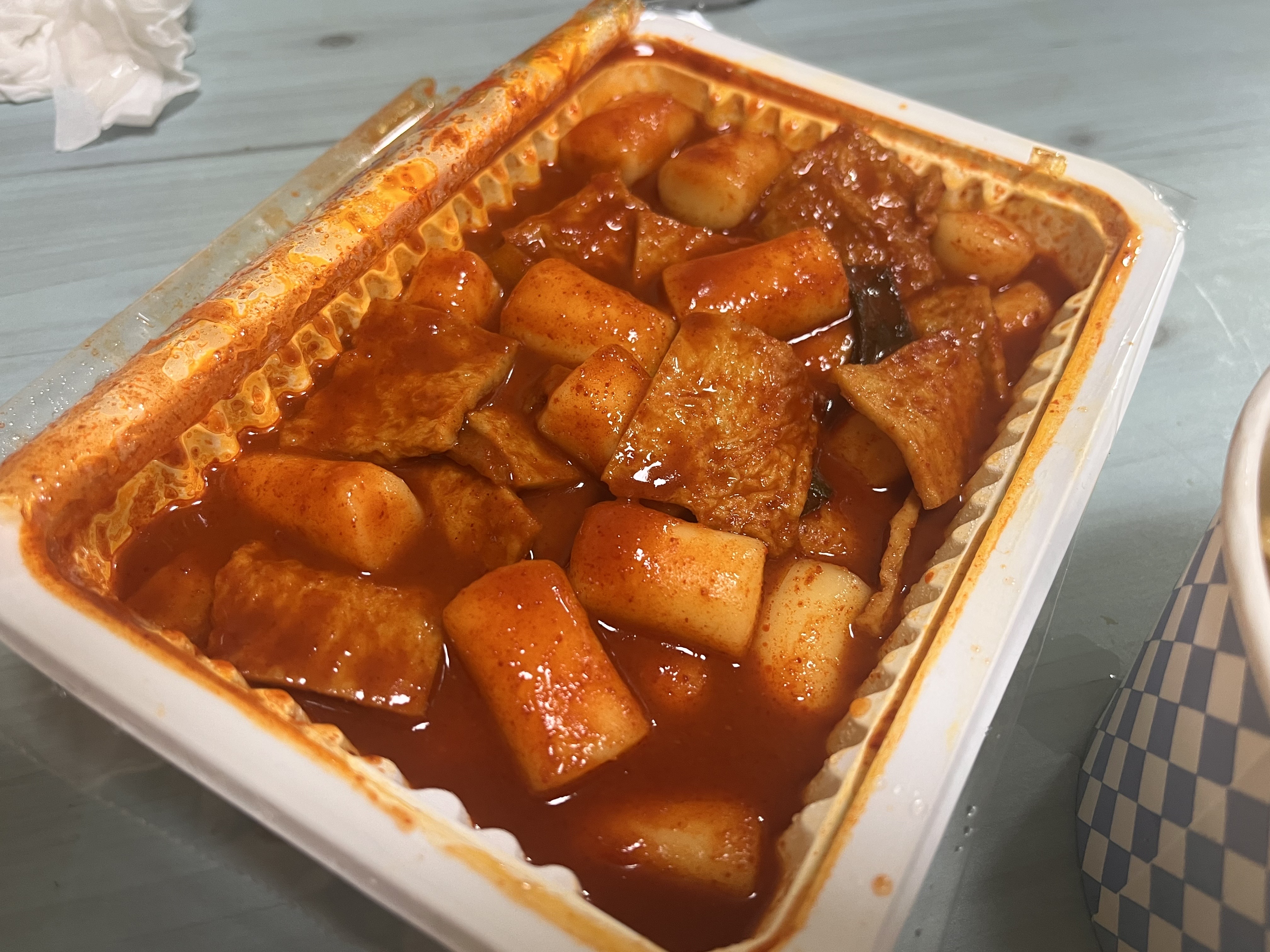 쌀떡볶이로, 떡이 쫄깃쫄깃하고 맛은 휴게소에서 파는 맛?
