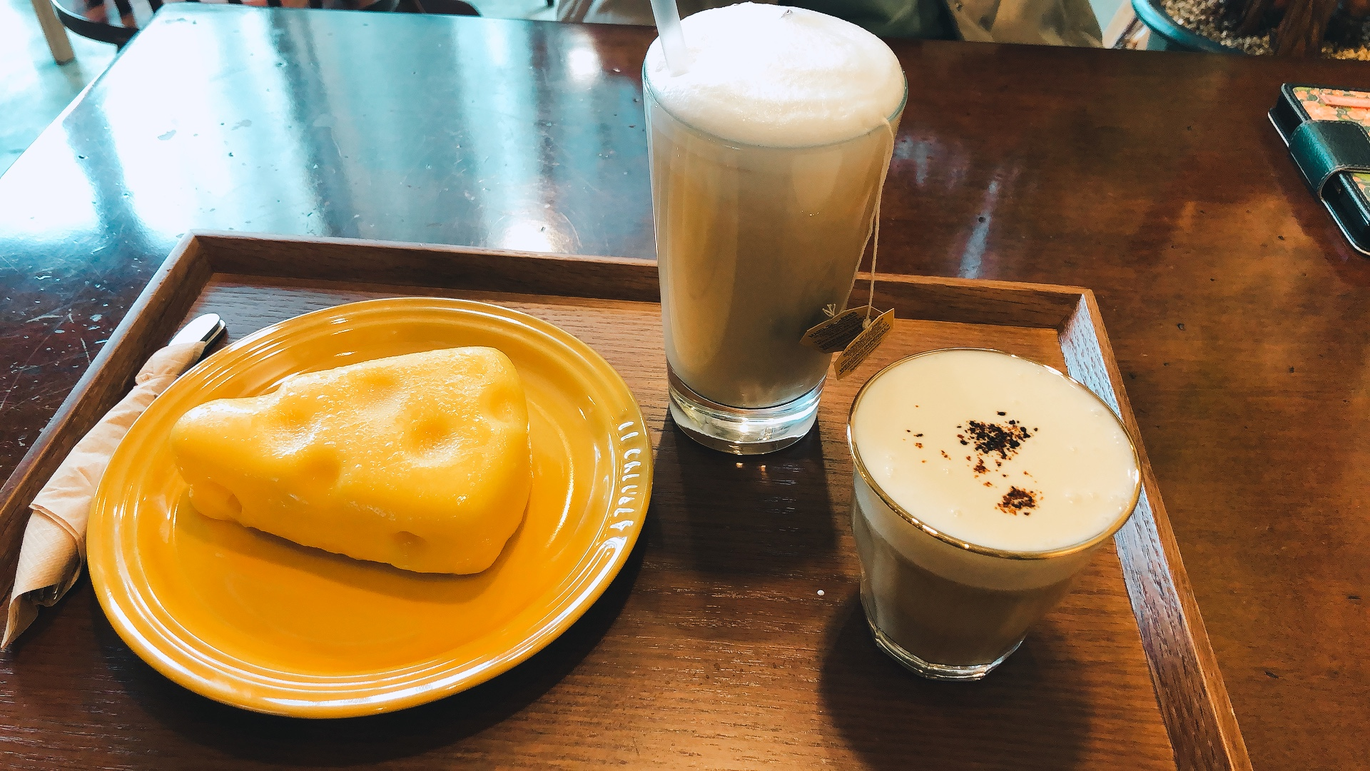 작은 잔에 담긴 게 아인슈페너인데, 위에 치즈크림이 올라가 있어서 확실히 색다르더라구여~