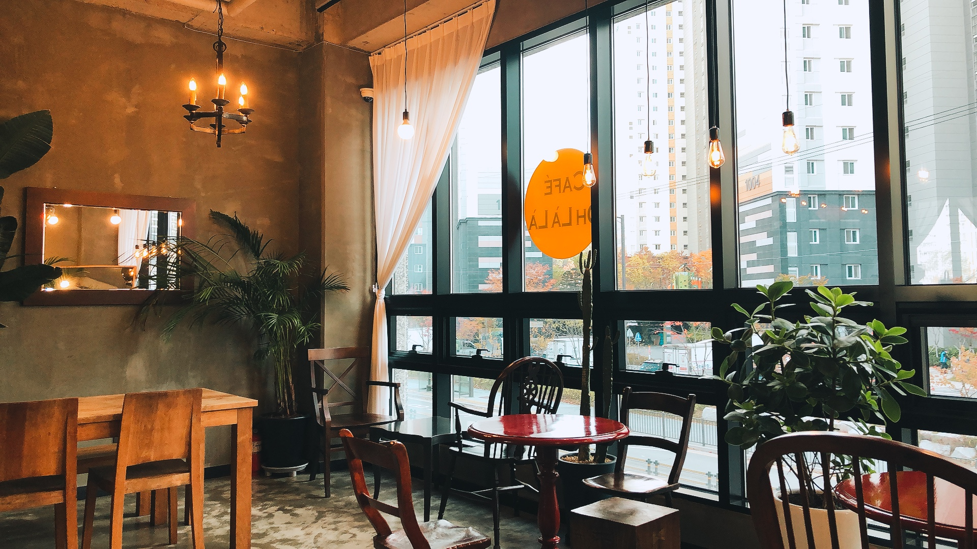 한쪽 벽이 전면 창이어서 아담해도 탁 트인 느낌이 나고,