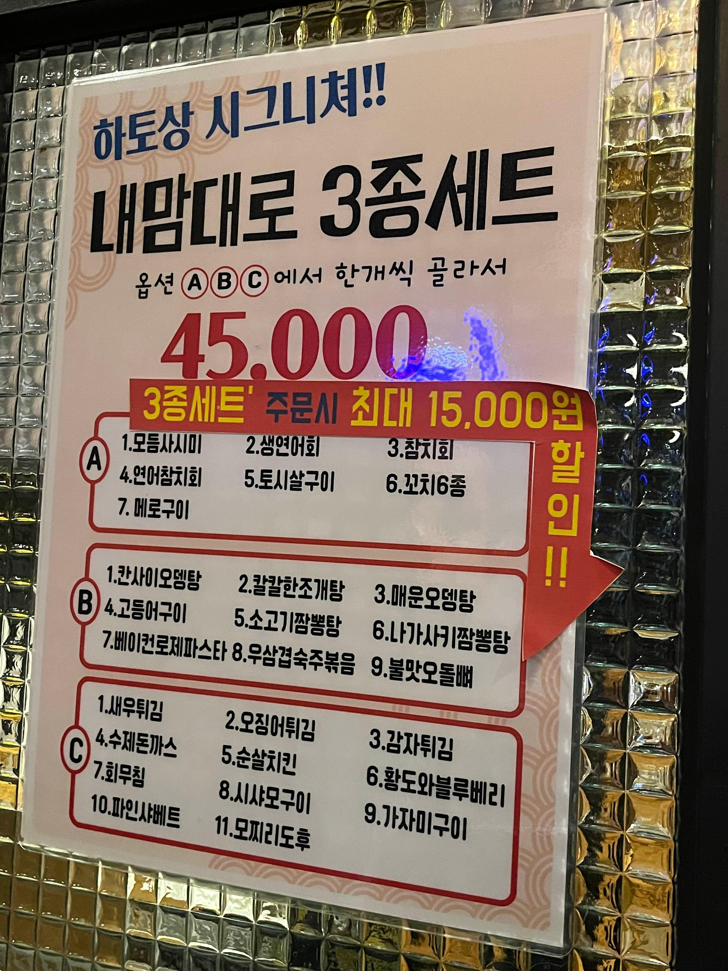 3.단품보다는 45,000원 세트로 시키시는 게 이득이니까