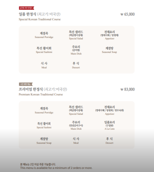 일품 한정식(65,000)과 프리미엄 한정식(83,000)도 문의하긴 했지만 최소 일주일 전에는