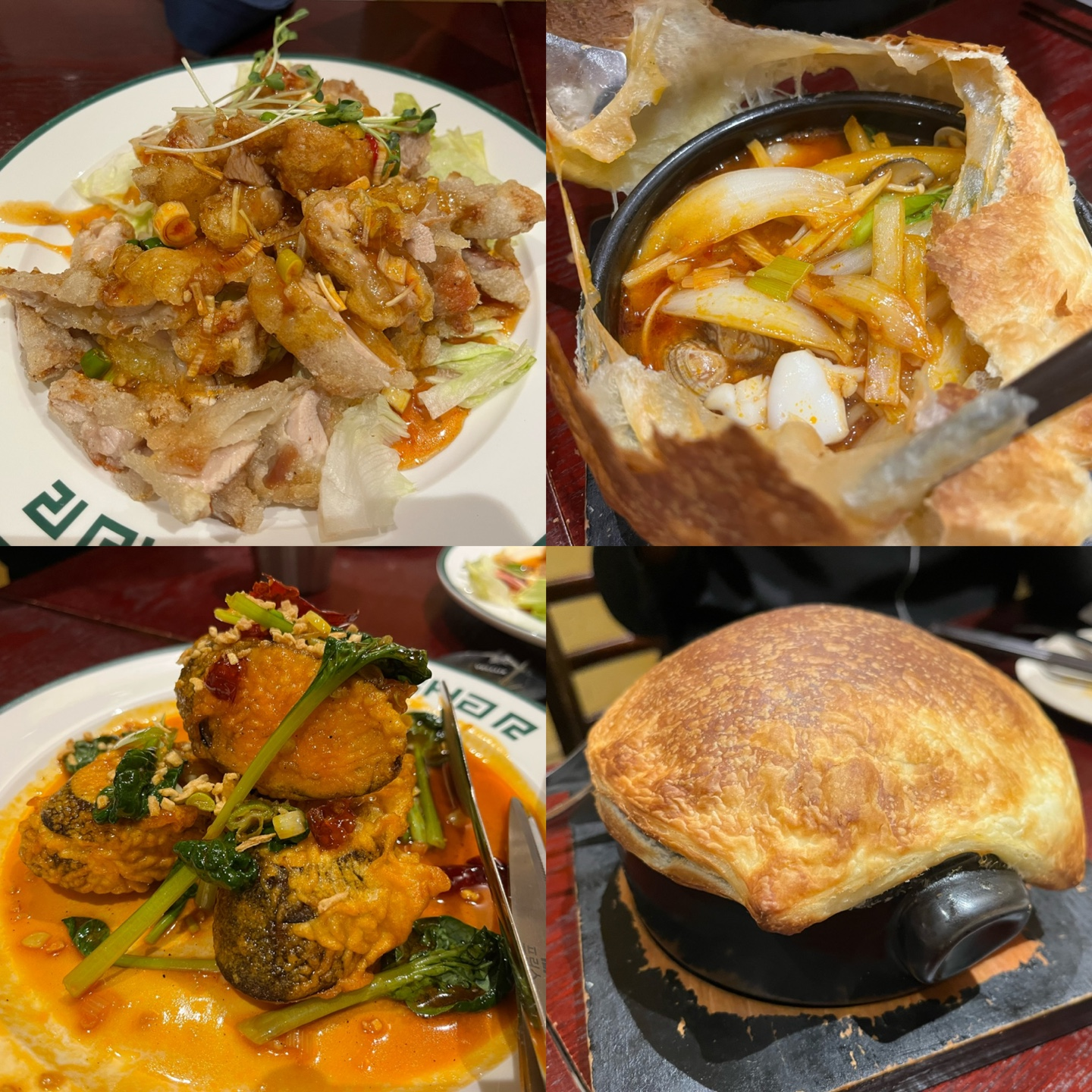 매콤한 중식 해물짬뽕파스타를 페스츄리 빵 안에 넣어 오븐에 구운 요리였는데요. 페스츄리를 찢고 안의 내용물을 빨리 보고 싶게 궁금증을 자극하는 비쥬얼이었어요! 예상외로 첫맛은 좀 달다?라는 인상이었는데, 먹다보니 점점 매콤하더라는..! 국물짬뽕 아니고 볶음 짬뽕에 가까워요. 바지락, 오징어 등이 들어가 있었는데 먹을수록 땡기는 맛이었어요!!