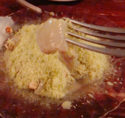 사실 고수는 제 취향이 아니라서 고수가 들어간 메뉴를 굳이 먹지는 않는데, 이 광어고수빙수는 정말 신기하고 처음 먹어보는 맛이었어요. 저 빙수얼음이 정말 톡 쏘는 맛이었는데, 식초로 만든 얼음 같은 느낌이랄까? 빙수라고 하면 보통 디저트라고 하지만 이 빙수는 얼음 밑에 광어회가 깔려 있기도 하고, 톡 쏘는 맛이 입맛을 돋궈줘서 애피타이저에 더 가까운 거 같습니다. 광어회도 진짜 쫄깃쫄깃하고 튀긴 옥수수알이 같이 깔려 있었는데 그것도 작은 팝콘처럼 고소했습니다.