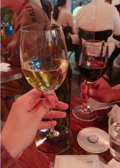 저희는 하우스와인으로 화이트와인 한 잔과 레드와인 한 잔을 주문해서 곁들여 먹었습니다. 음식들이 와인과도 매우 잘 어울렸습니다. 그래서 그런지 음료 메뉴에 와인 종류가 많았습니다. 다만 하우스와인도 꽤 비싼 편으로 한 잔에 7000원~7500원 정도였습니다. 2만원을 내면 와인을 따로 가져와서 먹어도 된다고 합니다. 여기서는 와인을 보틀로 주문하면 5만원이상이기 때문에 많이 마시고 싶을 때는 마시고 싶은 와인을 저렴하게 구입해와서 먹는 게 가성비가 더 좋을 거 같습니다. 저희는 다른 곳으로 2차를 가기로 해서 한 잔씩만 마셨습니다.