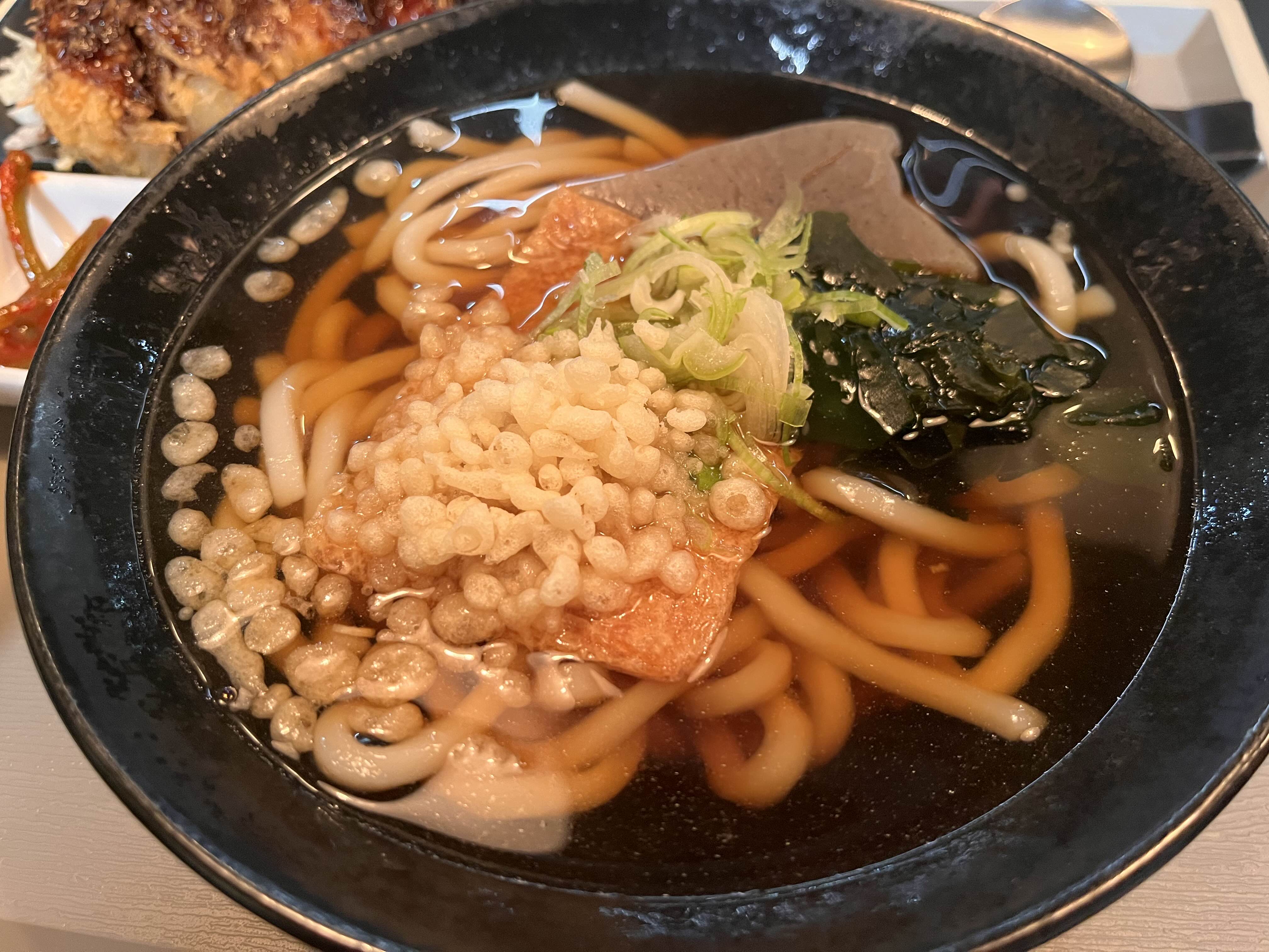 일단 우동, 달달하게 조려진 유부와 두툼한 곤약, 다시마와 튀김가루가 들어간 우동이었는데,