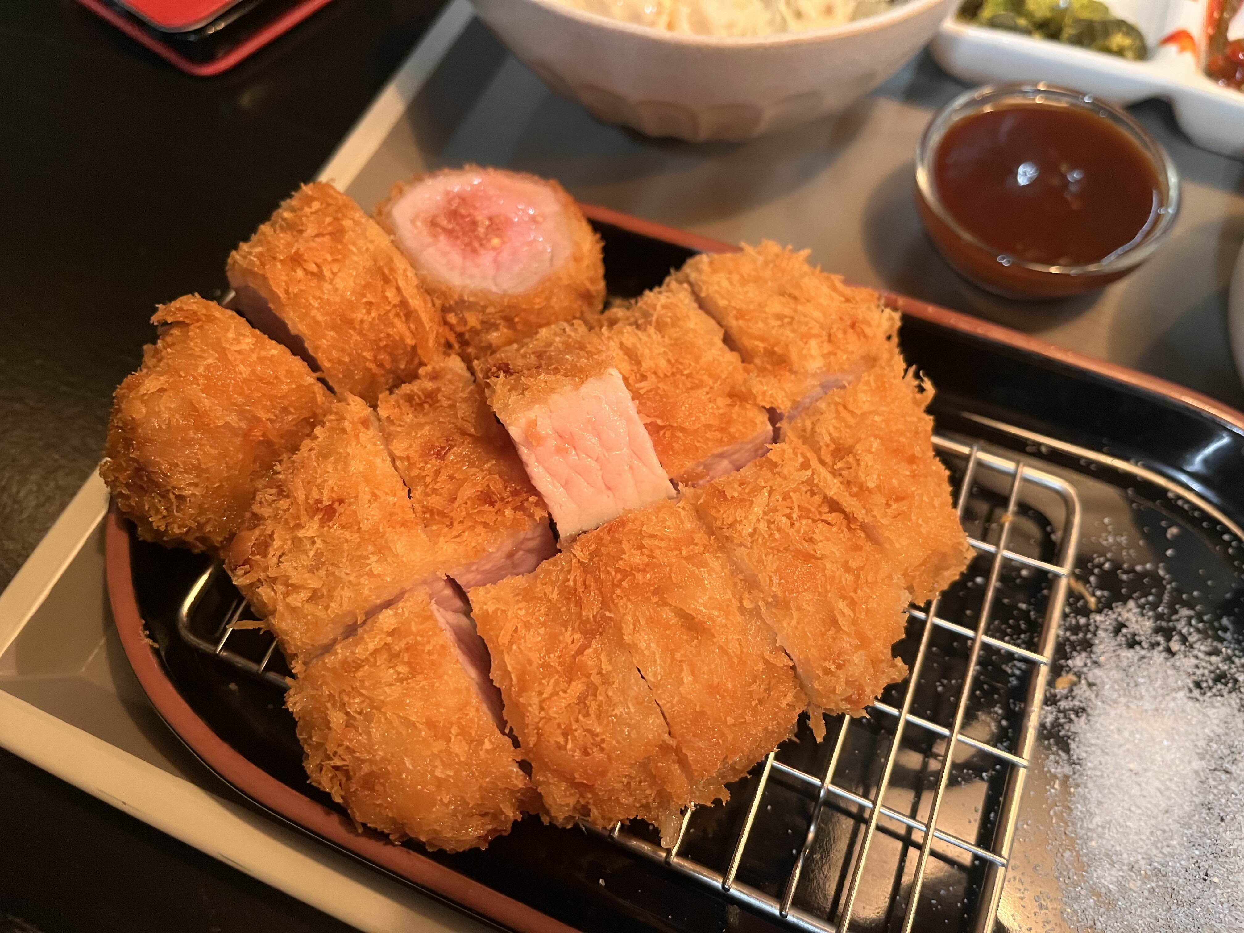 먹어보니 맨 위와 맨 밑이 로스카츠튀김이었고,
