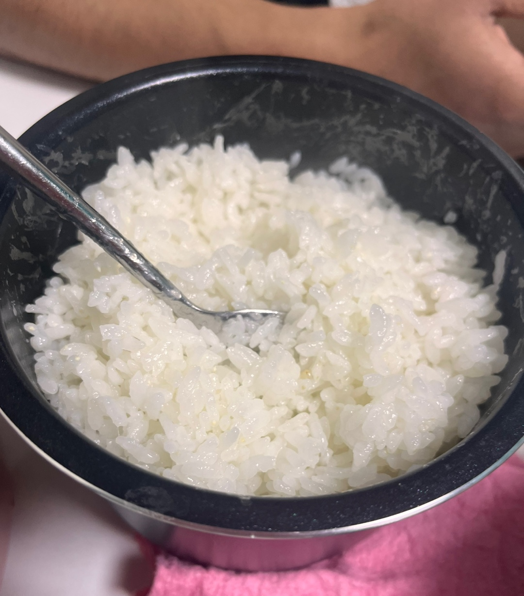 햇반이 세트로 사도 한 개에 2천원 가까이 하길래 전에 에어비앤비 장기손님을 위해 구매했던 밥솥에 밥을 해보기로 했어요. 숙박 중에 요청하셨어서 급히 쿠팡에서 구입해서 보내느라 저는 사용해본 적이 없었는데, 이번에 직접 사용해보았습니다! 크기는 제 손이 여자치곤 큰 편이긴 하지만, 제 손 크기랑 별로 차이나지 않을만큼 앙증맞은 사이즈예요. 장난감 같기도 하고.. 안에 들어 있는 솥은 더 작은데, 어림잡아서 그 솥의 반 조금 안 되게 쌀을 넣고(40% 정도?) 쌀을 씻고 물은 제 손등의 2.5배 정도? 올라오게 넣어주었습니다. 그리고 버튼은 정말 간단하게 전원버튼이랑 취사버튼으로 위아래로 딸깍하는 버튼밖에 없는데, 코드를 꼽고 이 버튼을 밑으로 내려주니까 취사가 바로 시작되었어요! 그만큼 밥을 하니까 3~4공기 정도 나오더라구요. 제 취향으로 밥이 약간 질면서 맛있게 됐어요! 작지만 성능은 괜찮더라구요. 보온은 안 되니까 1인가구로 이 밥솥을 이용한다면 냉동지퍼락용기를 이용해서 한 번 밥할 때마다 냉동실에 넣어놓고 꺼내먹는 방법을 써야할 거 같아요. 그래도 3~4인까지는 한 끼 먹을 수 있어서 친구들 놀러와도 딱 좋을듯요!