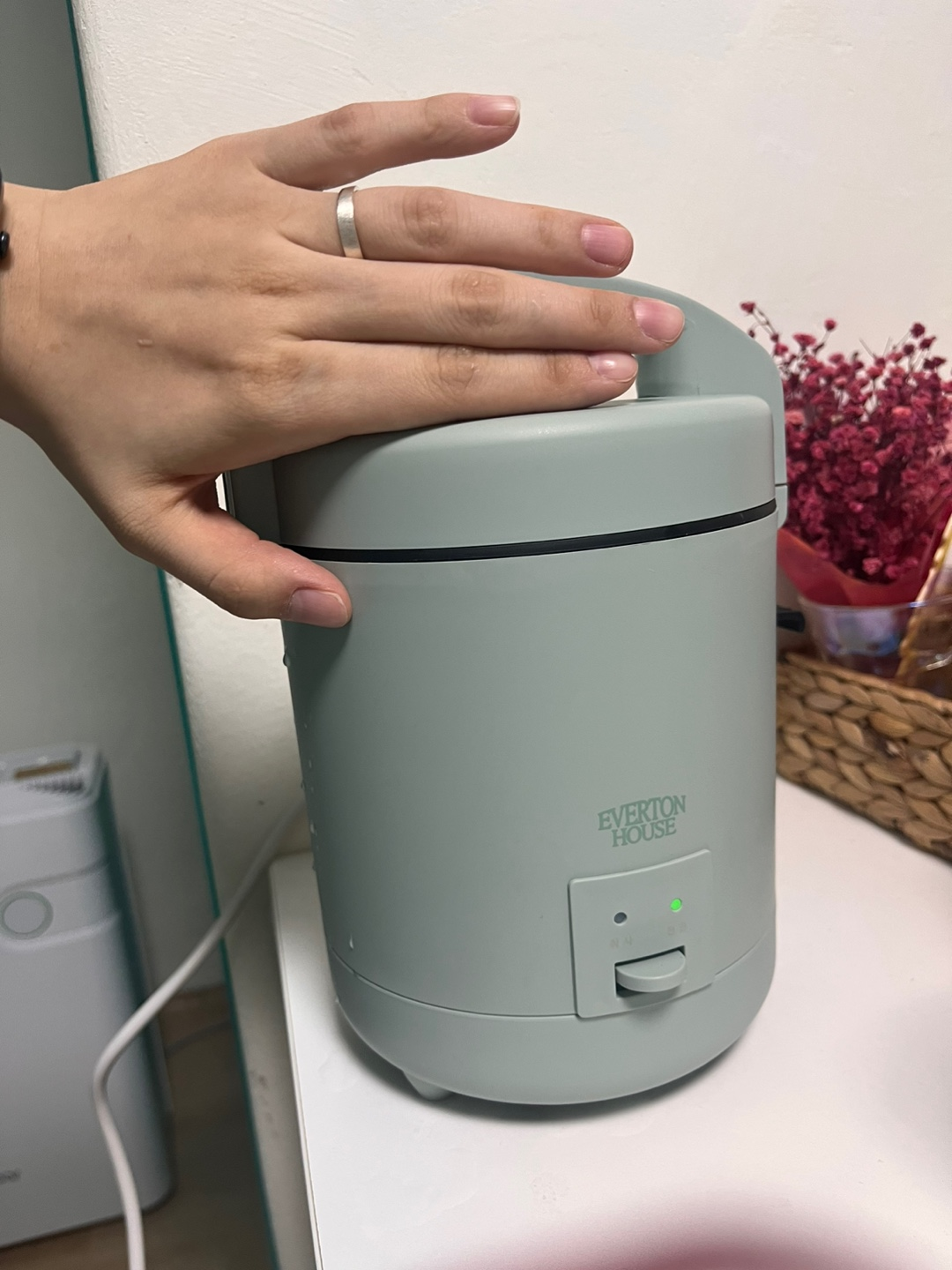 햇반이 세트로 사도 한 개에 2천원 가까이 하길래 전에 에어비앤비 장기손님을 위해 구매했던 밥솥에 밥을 해보기로 했어요. 숙박 중에 요청하셨어서 급히 쿠팡에서 구입해서 보내느라 저는 사용해본 적이 없었는데, 이번에 직접 사용해보았습니다! 크기는 제 손이 여자치곤 큰 편이긴 하지만, 제 손 크기랑 별로 차이나지 않을만큼 앙증맞은 사이즈예요. 장난감 같기도 하고.. 안에 들어 있는 솥은 더 작은데, 어림잡아서 그 솥의 반 조금 안 되게 쌀을 넣고(40% 정도?) 쌀을 씻고 물은 제 손등의 2.5배 정도? 올라오게 넣어주었습니다. 그리고 버튼은 정말 간단하게 전원버튼이랑 취사버튼으로 위아래로 딸깍하는 버튼밖에 없는데, 코드를 꼽고 이 버튼을 밑으로 내려주니까 취사가 바로 시작되었어요! 그만큼 밥을 하니까 3~4공기 정도 나오더라구요. 제 취향으로 밥이 약간 질면서 맛있게 됐어요! 작지만 성능은 괜찮더라구요. 보온은 안 되니까 1인가구로 이 밥솥을 이용한다면 냉동지퍼락용기를 이용해서 한 번 밥할 때마다 냉동실에 넣어놓고 꺼내먹는 방법을 써야할 거 같아요. 그래도 3~4인까지는 한 끼 먹을 수 있어서 친구들 놀러와도 딱 좋을듯요!