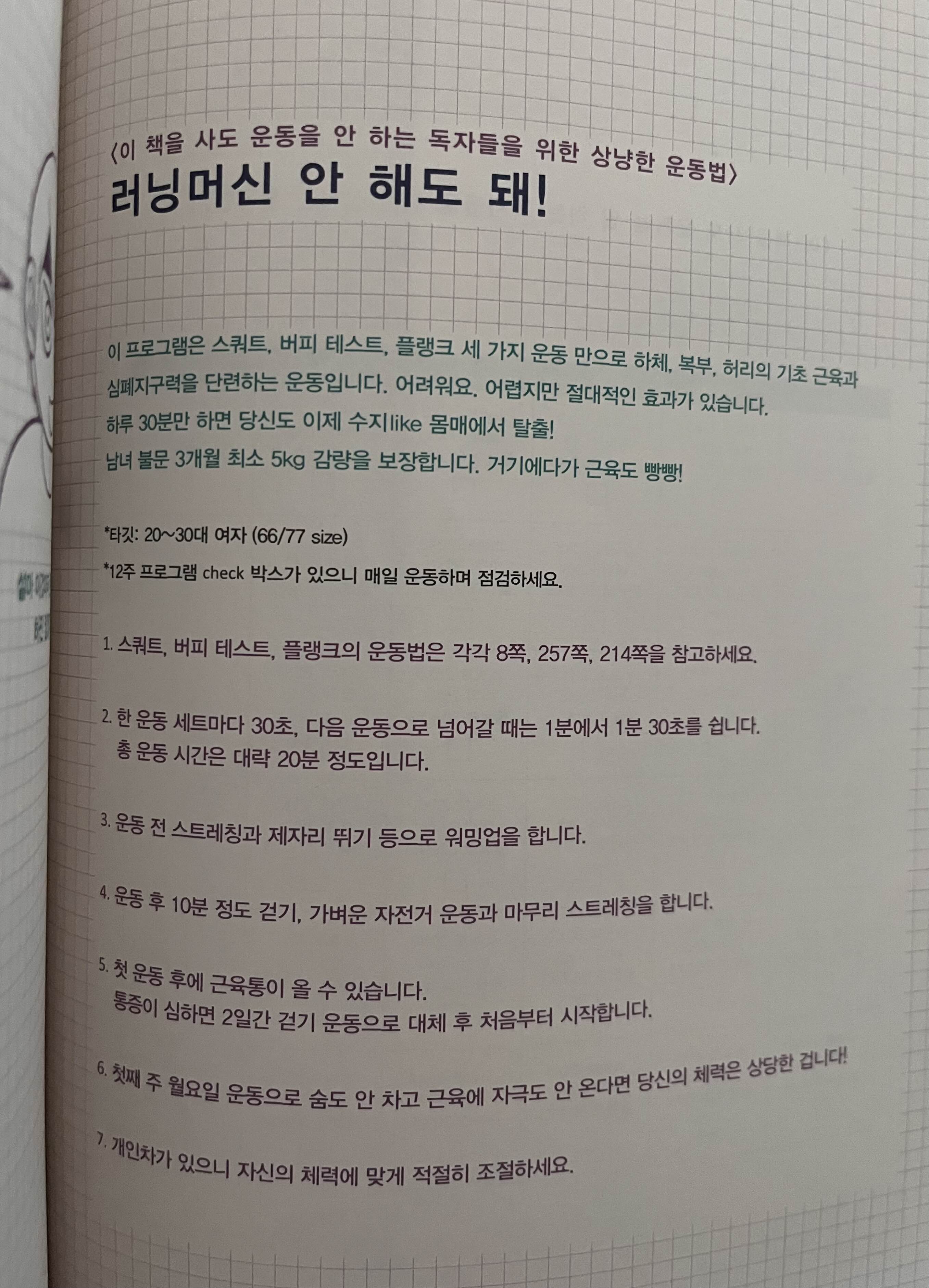 제가 운동을 안해본 사람은 아니라서 스쿼트와 플랭크는 땀이 줄줄 나지만 할만한데,