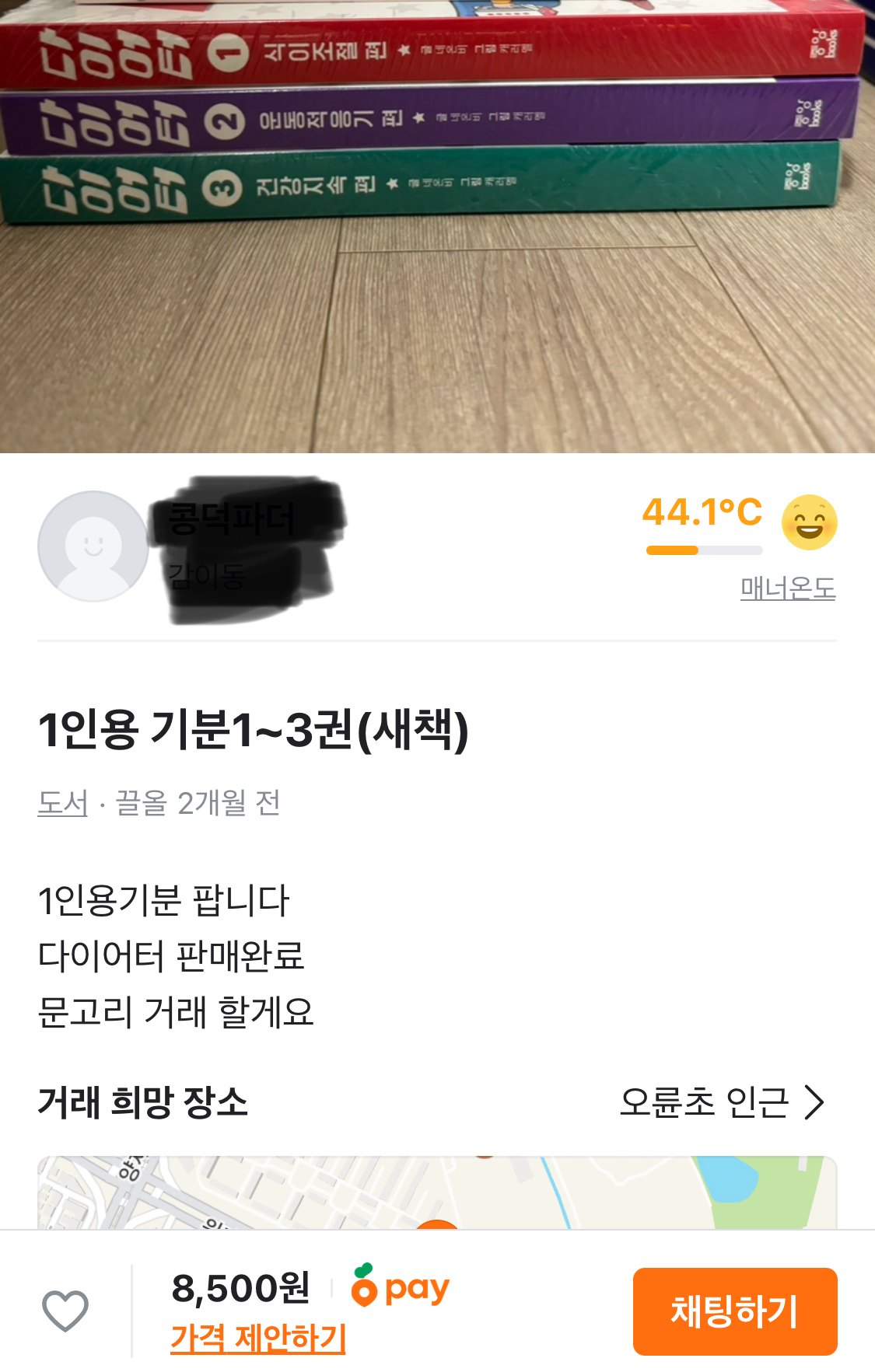 다이어트 성공한 유튜버 분들이 많이 추천하시길래 당근에서 3권 다 8천원에 구매했어요.