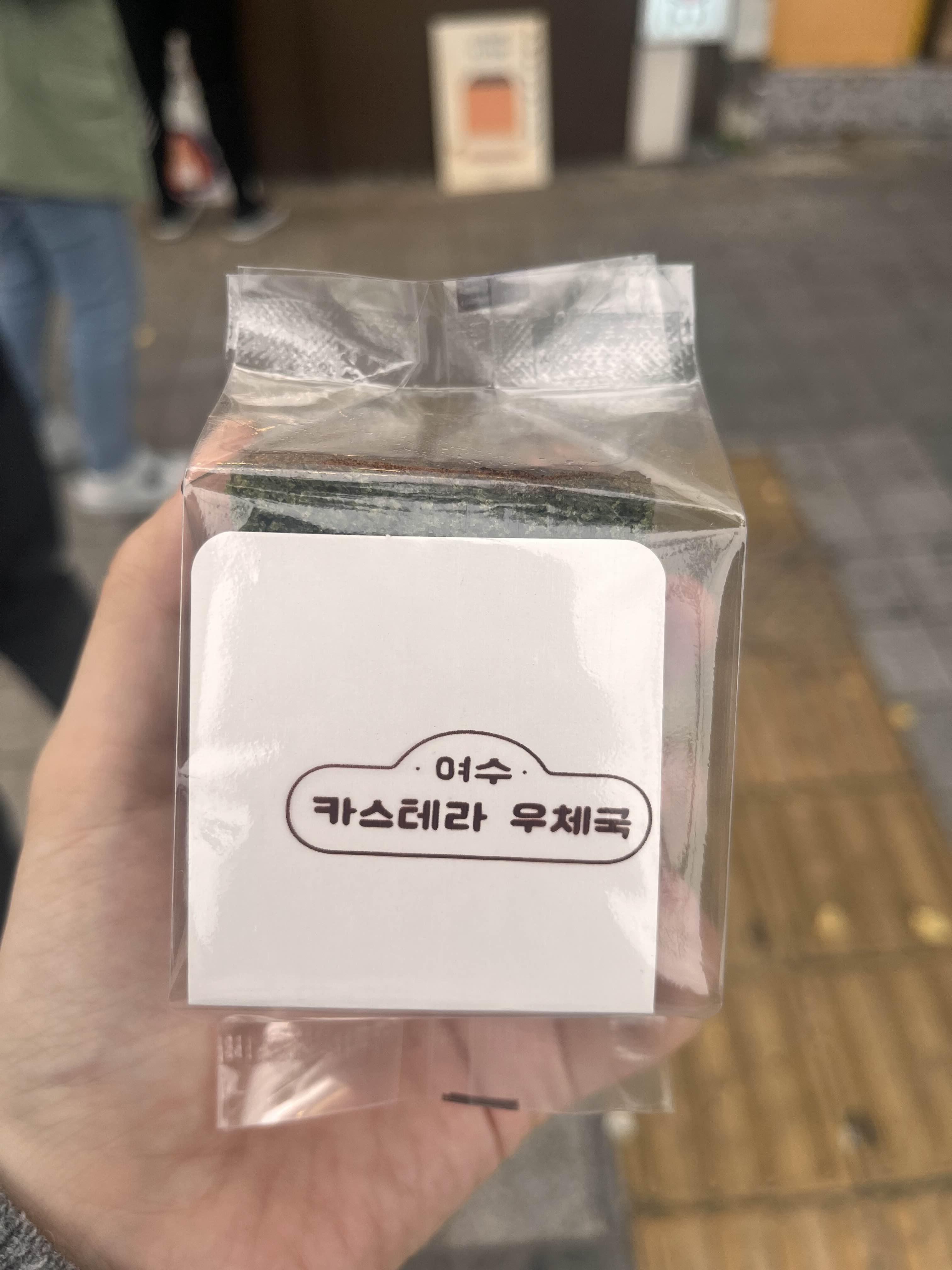 사실 사기 전에 3천원짜리 낱개로도 팔길래 산책하면서 한 번 먹어봤어요. 고양이얼굴이 귀엽게 찍혀 있는 것도 매력인데, 쑥향도 은은하게 나면서 바닥에는 호두가 약간 들어 있어서 카스테라로서 차별화된 느낌! 식감은 쑥이 들어간 백설기와 카스테라의 중간이랄까요? 빵이 좀 찰져요. 그래서 밀도가 높아서 그런지 한 조각만 먹어도 배가 불러요. 쫄깃쫄깃한 거 좋아하는 한국인들 입맛에 딱! ㅎㅎ 저는 매우 맘에 들었습니다😊😊