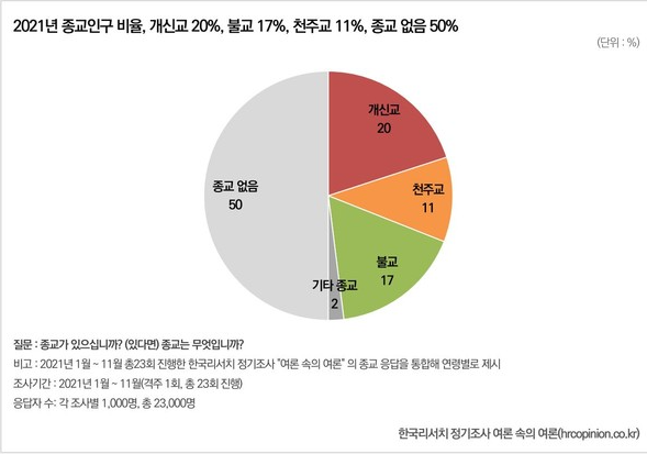 국교도 없고 무교비율이 높은 한국