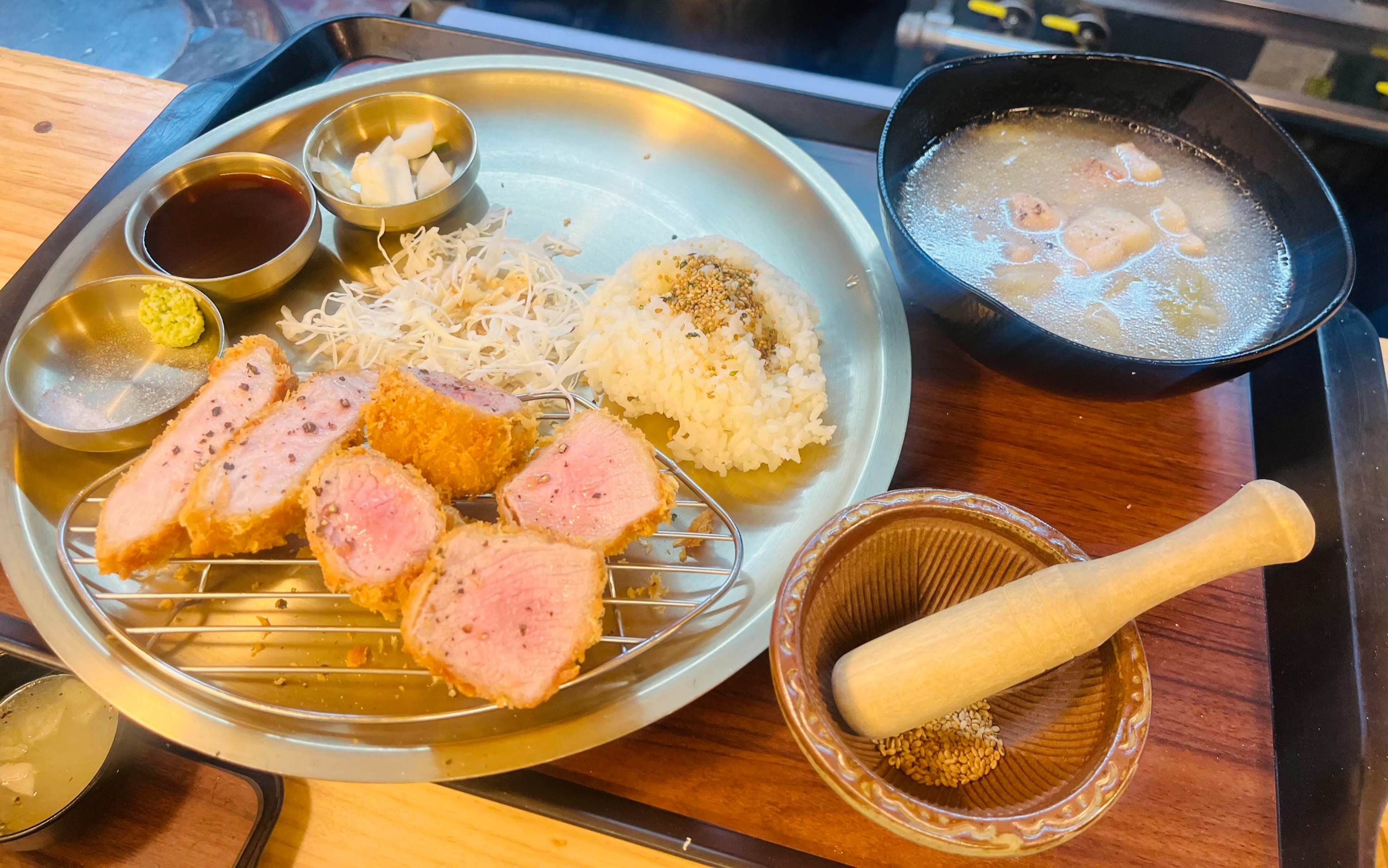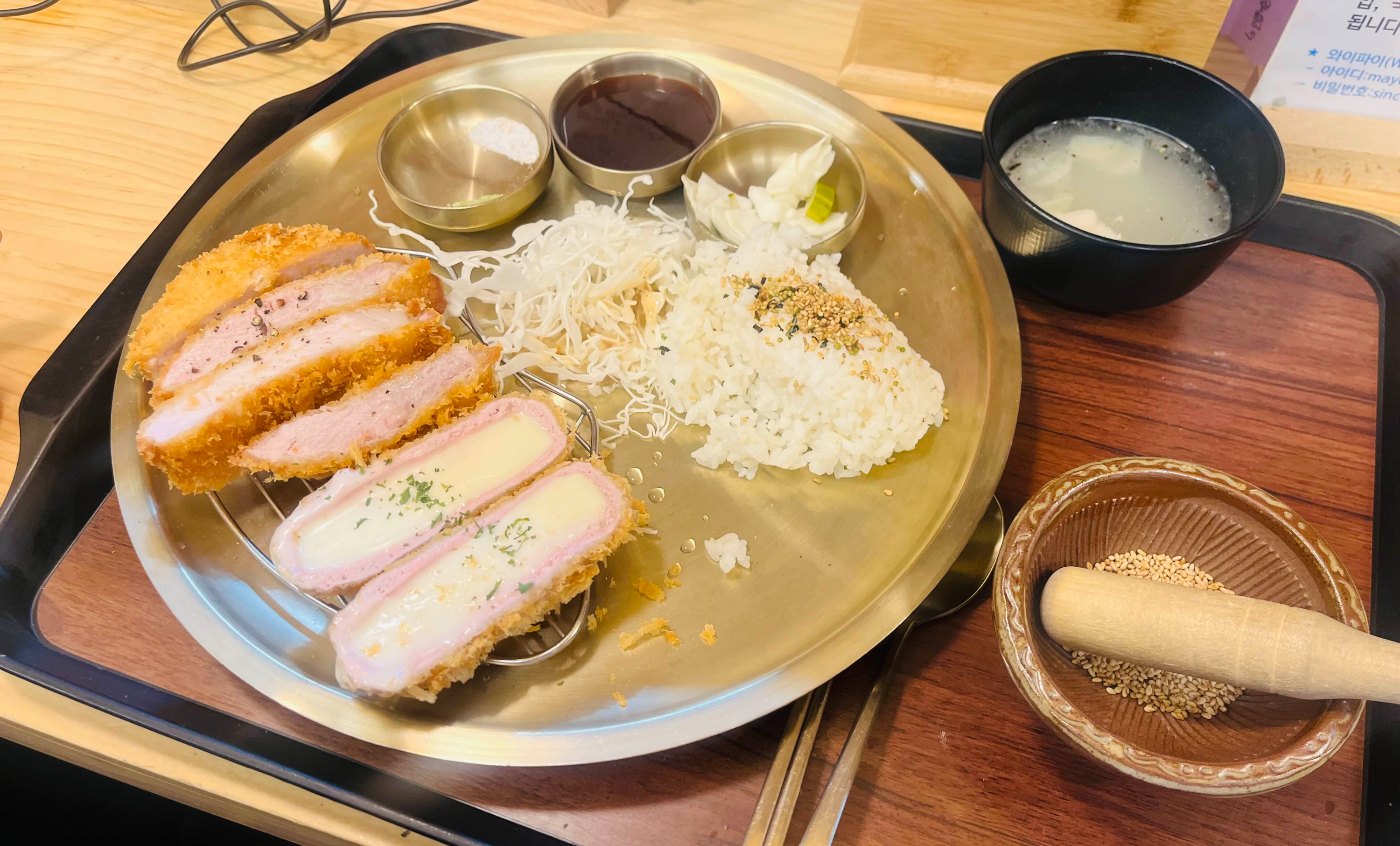 삼겹살이 많이 들어가 있었는데, 돈카츠랑 먹기엔 느끼했어요🤣아쉽