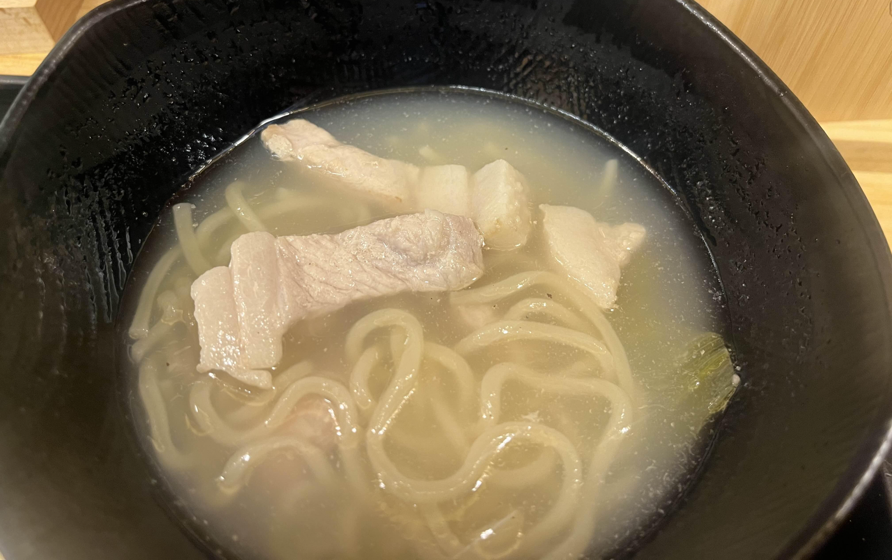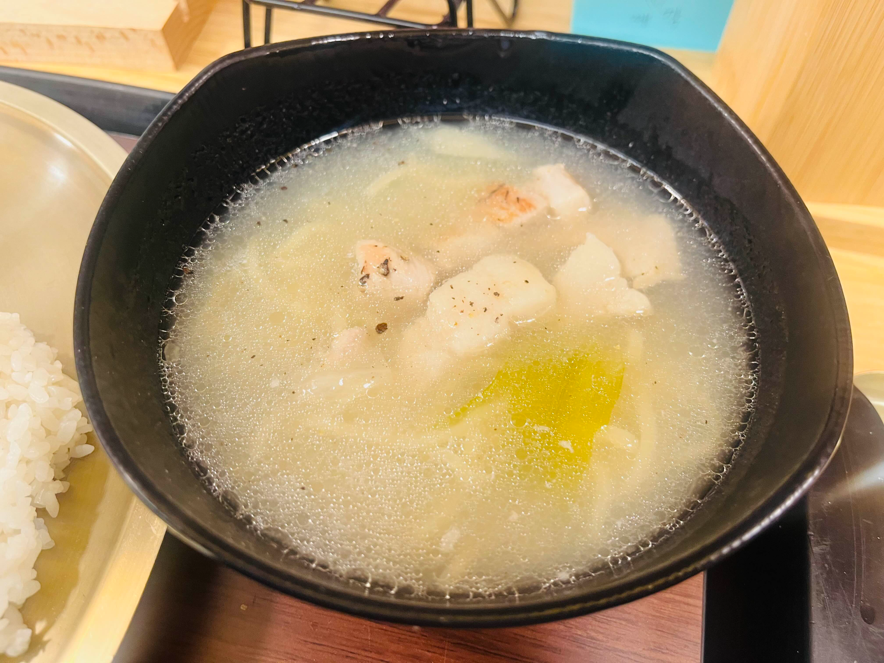 함께 나오는 국은 특이하게도 미소시루가 아니라, 맑은 국물이었어요. 돼지고기를 넣은 무국?