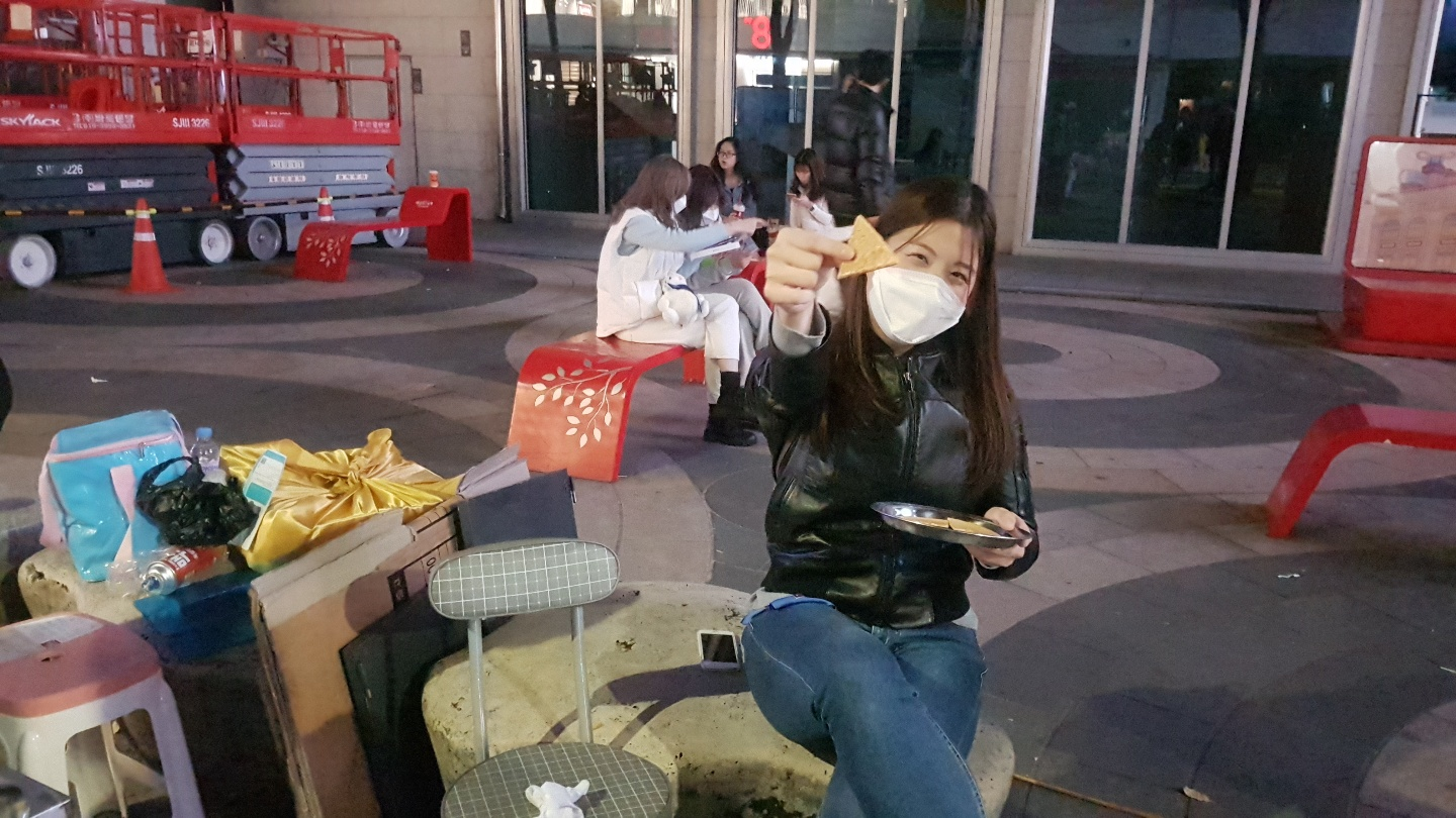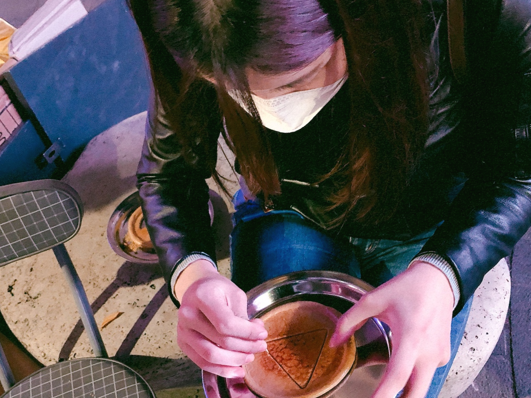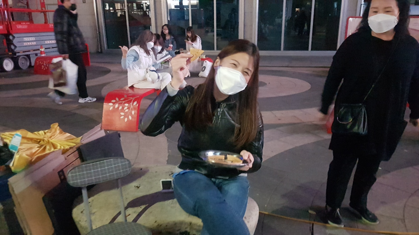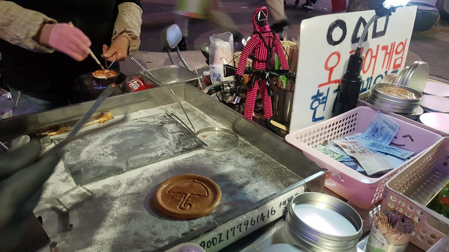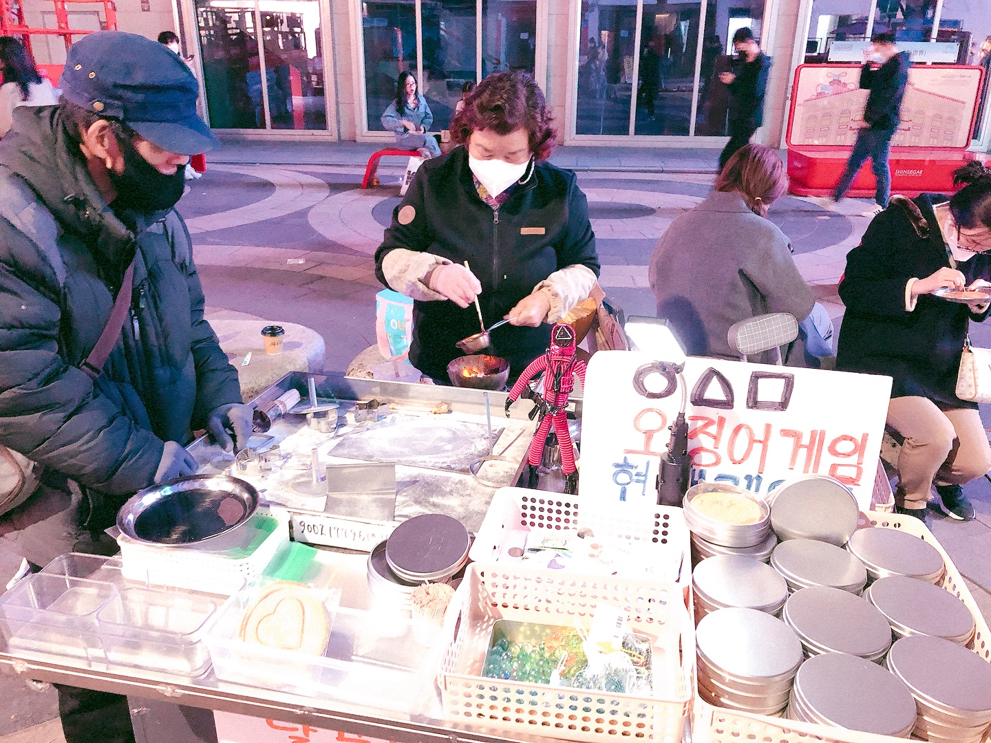 이동 중에 오징어게임에서 나오는 달고나뽑기를 할 수 있는 곳을 발견해서
