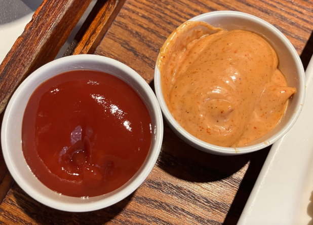 사진의 주황색소스인데, 정말 별미예요! 이게 하이린지버거에 들어가는 소스인 거 같더라구요.