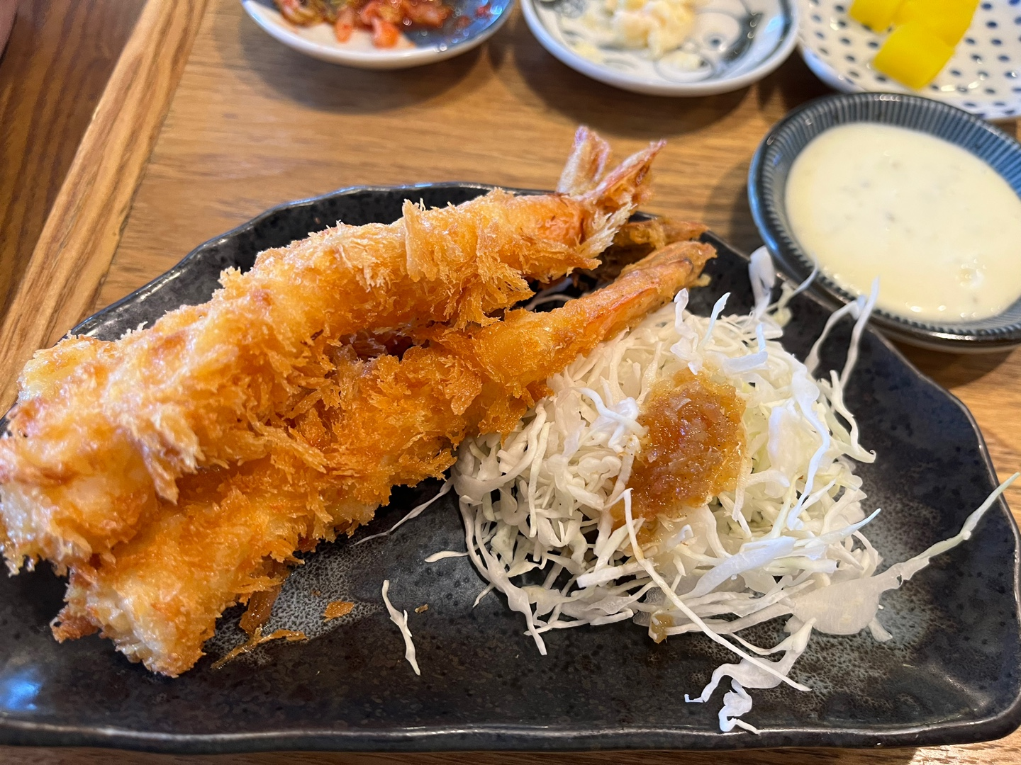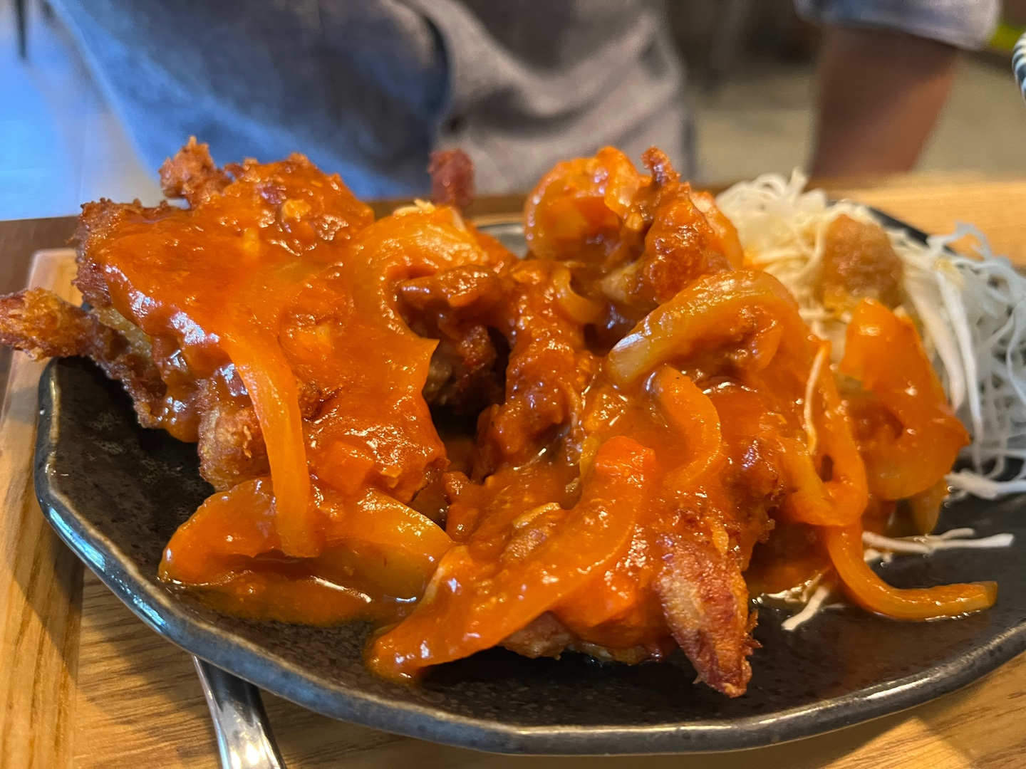 새우튀김도 그냥 그랬는데, 소스가 너무 밍밍하고 맛이 없어서 놀랐고, 가라아게는 매운 가라아게라길래 매운 반죽으로 튀긴 가라아게인 줄 잘못 예상해서, 나온 걸 보니 약간 매콤하고 케찹맛 나는 하이라이스 소스? 같은 걸 뿌려주셨는데, 아 정말 그냥 가라아게 시킬 걸 그랬나 싶었습니다. 소스가 너무 별로였어요. 나름 저는 대중적인 입맛을 가지고 있다고 생각하고 있고, 최근엔 식당들의 맛이 상향 평준화되어 왠만하면 맛없다는 소리는 안 나오는데 여기는 정말 맛없다는 생각이 들었어요.