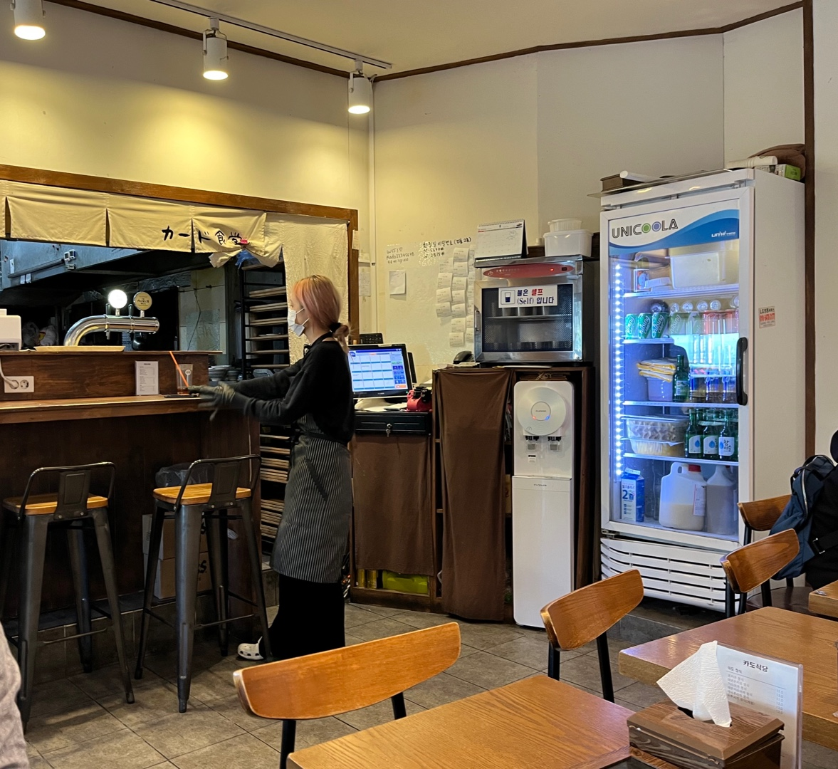 내부도 테이블 4개와 카운터자리, 창밖을 보면서 먹는 자리가 있었고 아담한 것이 딱 전형적인 일식당 느낌!