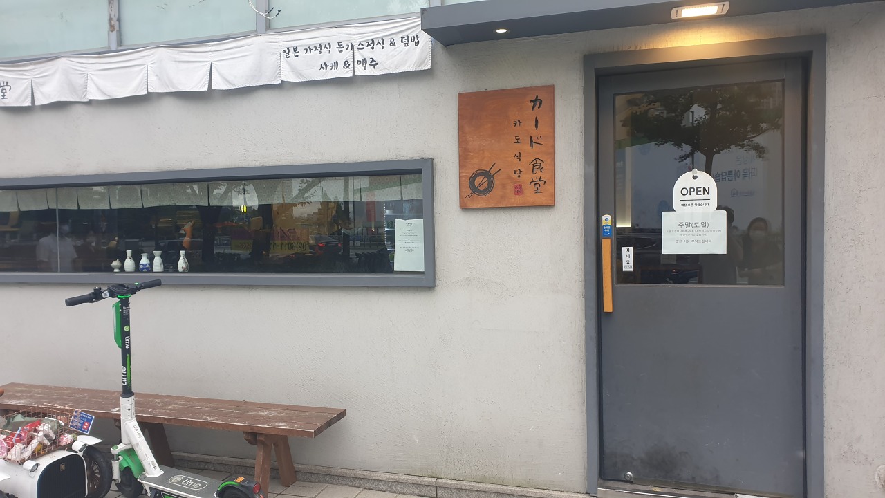 제 일터가 이쪽에 있어서 몽촌토성역에 자주 가는데요. 지날 때마다 항상 신경쓰이던 곳이 있었어요. 식당이름의 "카도"는 "모서리, 각" 이런 뜻으로, 길이 꺾여지는 모퉁이에 있는 식당이라는 의미로 이런 귀여운 이름을 지은 것 같더라구요. 뭔가 일본의 아기자기한 맛이 있는 외관과 이름이 오래 일본에서 살다온 저에게 어필이 됐던 거 같아요. 항상 여기 한 번 먹어봐야되는데 하면서 지나가곤 했는데, 드디어 갈 기회가 생겨서 포스팅을 해봅니다!