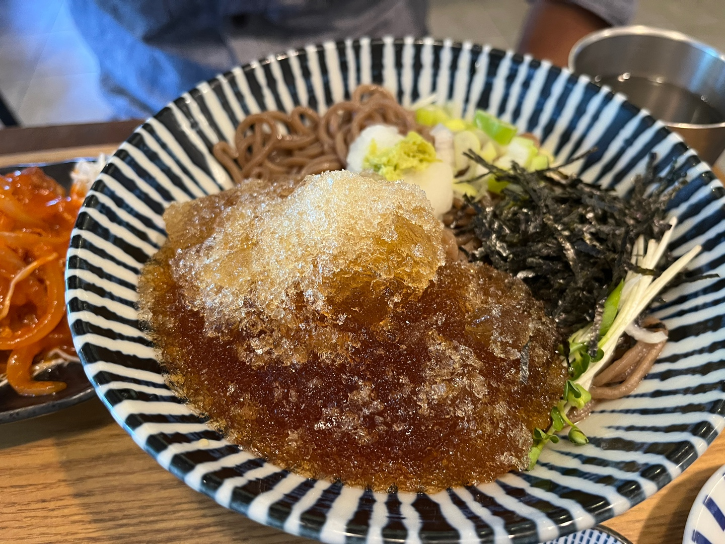 밑반찬은 단무지, 김치, 포테토샐러드가 나왔는데 노멀했고, 냉모밀은 단맛에 그냥그런맛.. 시장에서 싸게 파는 맛?