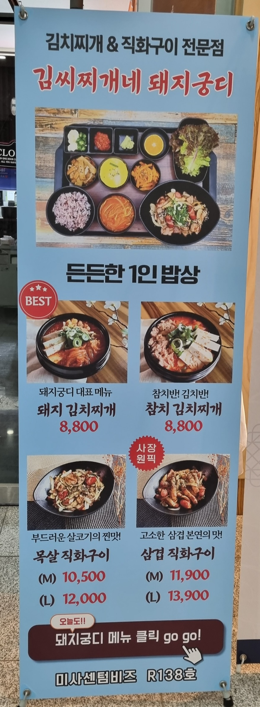 사실 맛있는 김치찌개가 드시고 싶으시다면 여기보단 "백채김치찌개"라는 곳이 고기도 생고기라서 더 맛있고 맛도 훨씬 좋아서 더 추천해요!! 하지만 아쉽게도 1인분은 안 팔아서 혼자 잘 챙겨먹고 싶을 땐 1인 정식이 제대로 나오는 [김치찌개네 돼지궁디]가 낫죠.