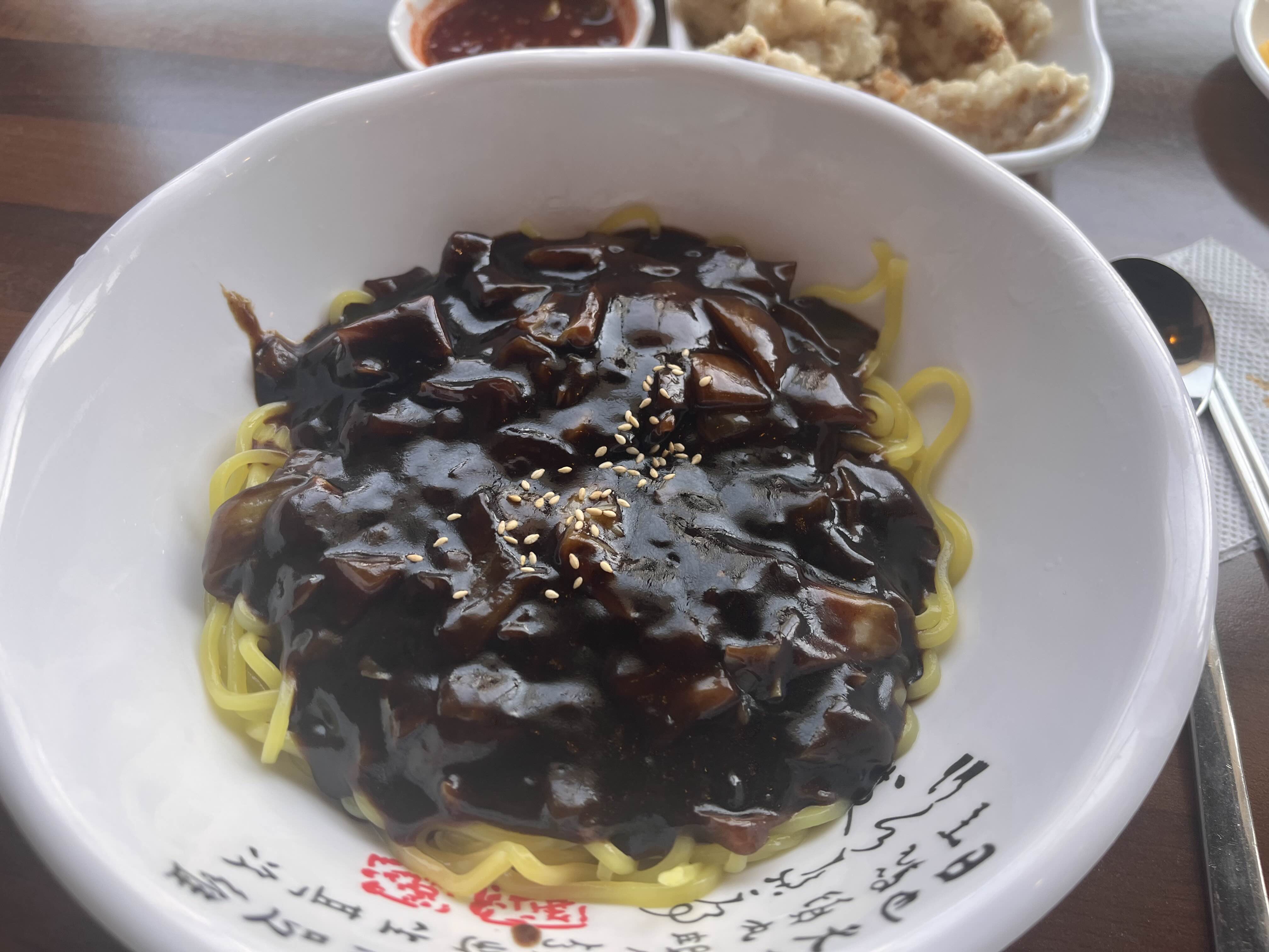 짜장면은 이벤트가인 대신에 원래 토핑으로 올려주던 작은 새우튀김 한 개는 빠져 있었어요~ 하지만 새우튀김 때문에 짜장면을 먹는 것은 아니기에 아무 상관 없었다는! 고기랑 야채가 적당한 크기, 적당한 양으로 들어 있었고 평타치는 맛이었어요. ㅋ달달하면서 입에 착착 감기는 맛👍👍 갠적으로 고춧가루를 뿌려먹으면 느끼하지 않아서 더 좋아요. 이벤트기간동안 3번은 더 갈래요! 3,800원의 행벅 대박임😊💕