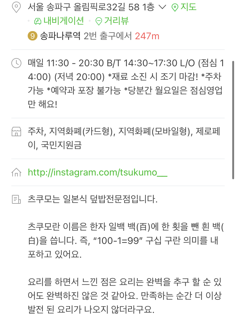 [츠쿠모]는 송파나루역 근처, 방이전통시장 입구 건너편에 있는 작은 일식집인데요. 외관은 보통의 일식집 느낌으로 깔끔한 인상을 줍니다.