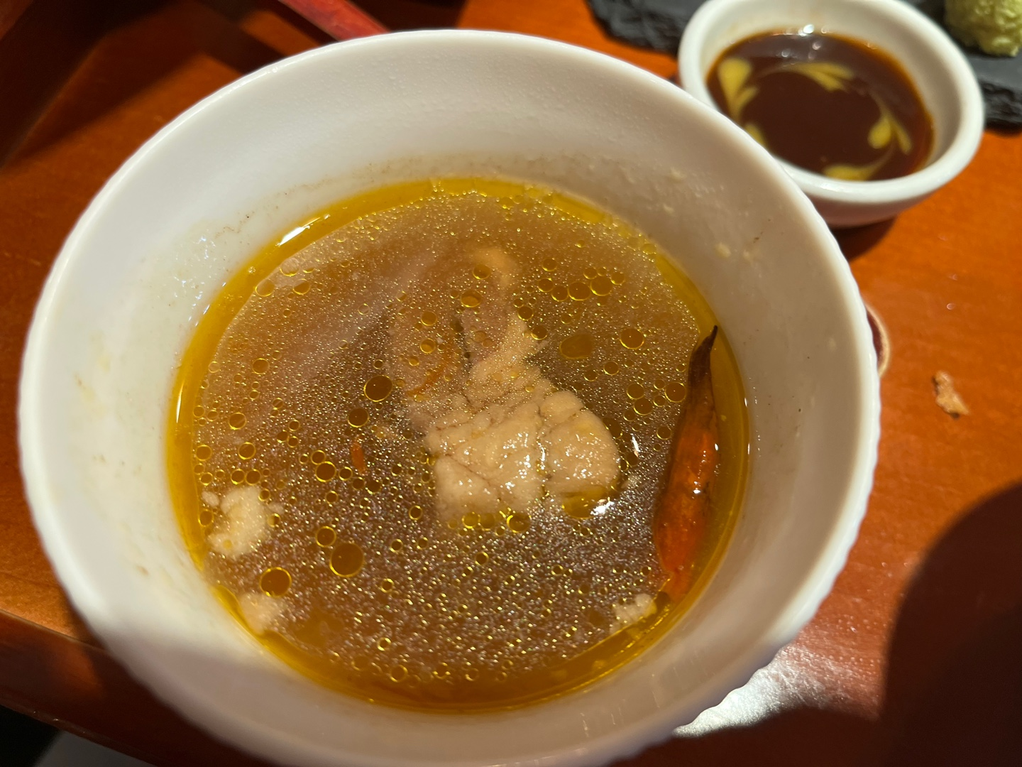 근데 반전인 건 장국이 정말 맛있었어요. 제 생각엔 "돈지루"라고 하는 돼지고기를 넣은 일본식 미소된장국에 가까운 느낌인데, 여기에 베트남고추를 넣어서 칼칼한 한국식으로 끓였더라구요. 제가 "돈지루" 되게 좋아하는데 여기서 "돈지루"를 먹게 될 줄은 몰랐어서 정말 반가웠어요.