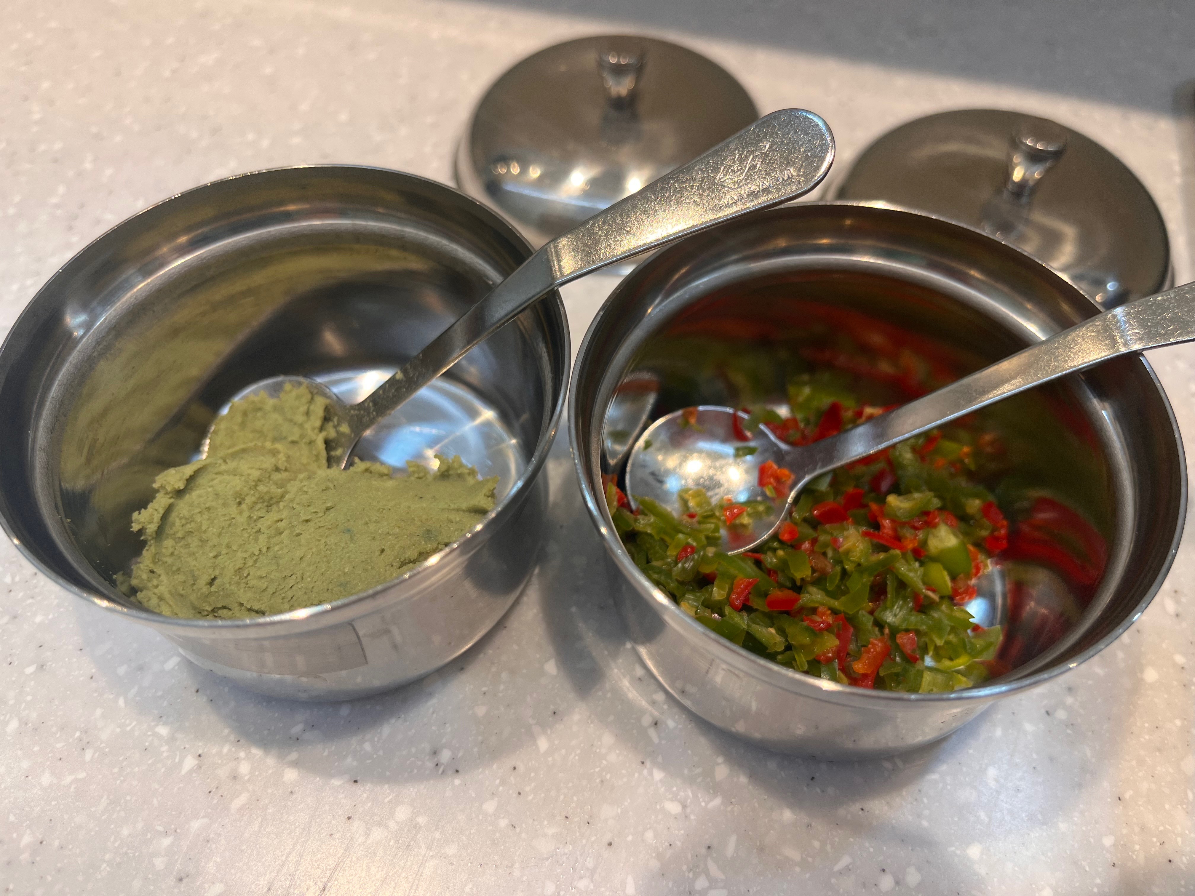 와사비를 칠리에 섞어서 먹어도 별미라고 직원분이 추천해주셨어요.