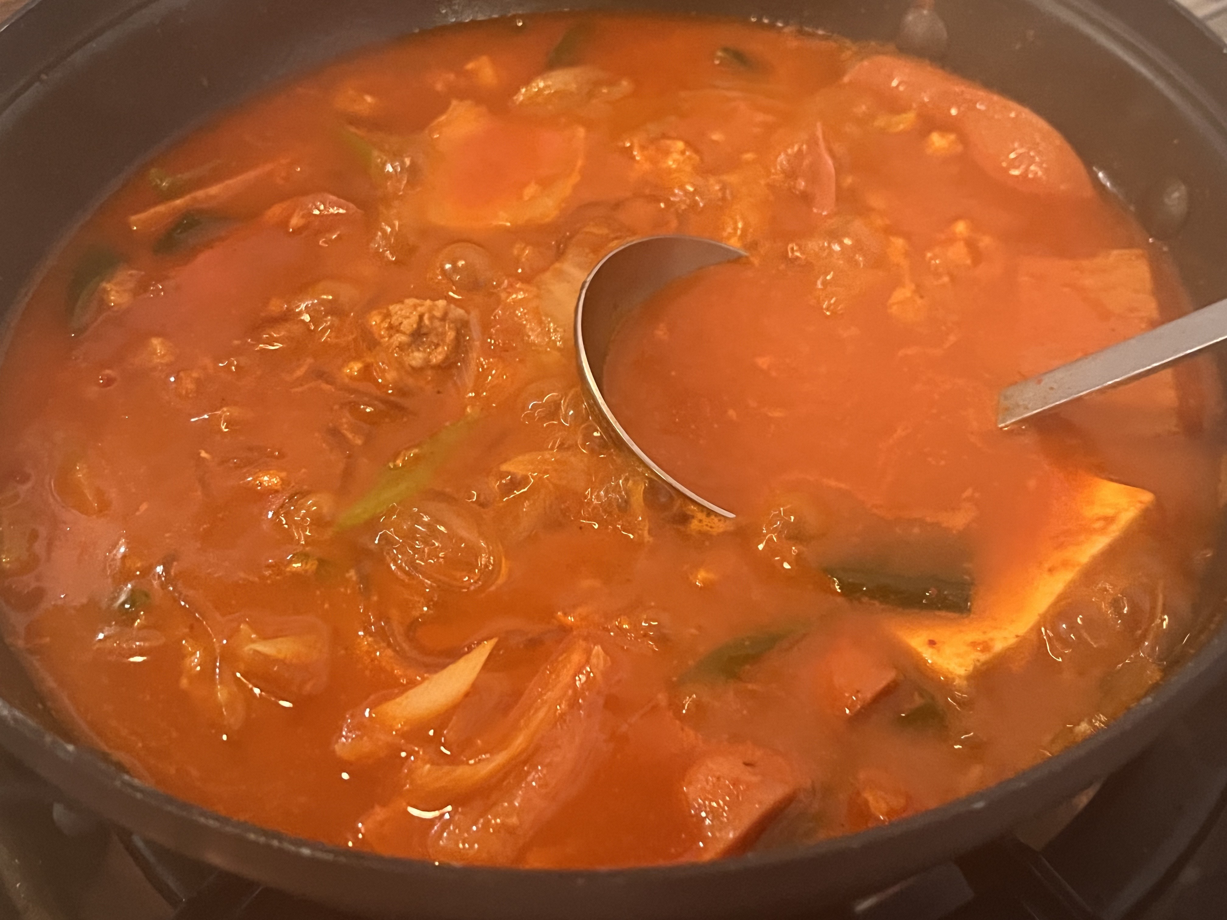 그 외에는 햄, 소세지, 콩, 다진 고기?, 두부, 파, 김치 등이 들어 있었어요!