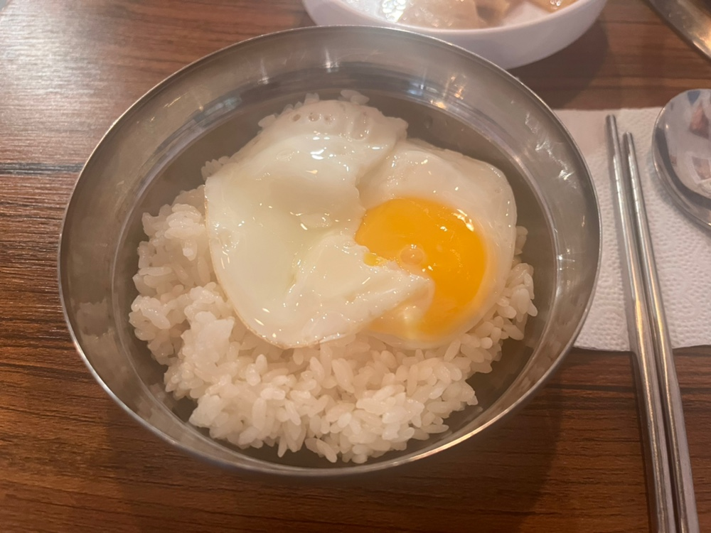 아니 근데, 이게 뭐죠?? 밥에 반숙후라이가 같이 나오네요.