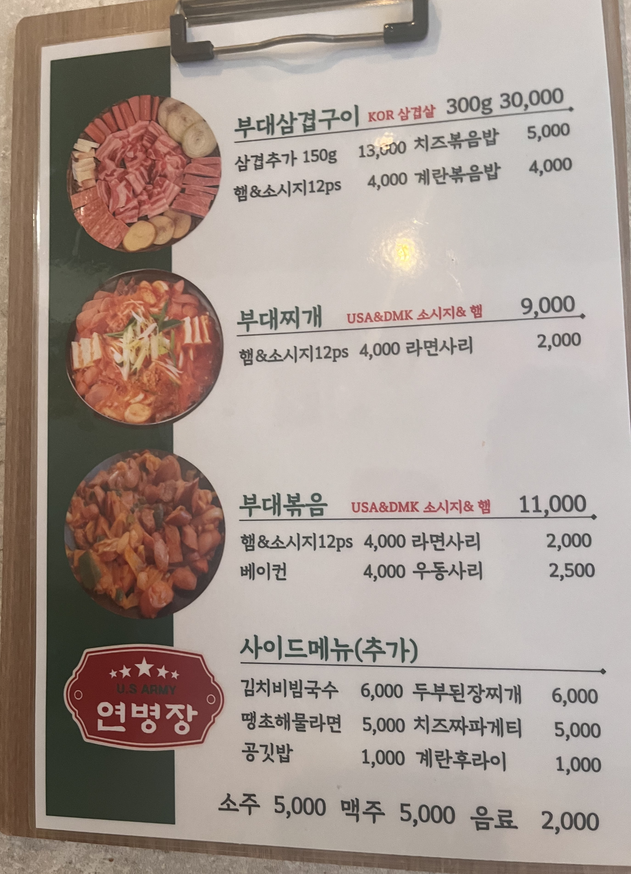 제가 방이먹자골목 쪽에서 부업이 끝나고 나면 오후 3-5시쯤이 되는데요. 딱 식당들 브레이크타임이라서 배고픈데 먹을 데가 없어서 서러울 때가 많아요. 게다가 방이먹자골목 식당들은 일요일엔 아예 문을 닫는 경우가 많고, 대부분이 술집이라서 식당도 잘 없어요. 그리고 혼자 밥먹으려고 하면 점심시간 아닌 바에야 1인분은 안 되는 곳들이 대부분이고.. 이 날도 어디 밥 먹을 수 있는 데가 없나 헤매고 있었는데, 부대찌개 9,000 부대볶음 11,000이라고 써있고 2인분부터 가능이라는 말은 없길래 눈치를 보며 안을 들여다보았습니다. 사장님인 거 같은 분과 눈이 마주쳐서 손가락으로 1을 그리며 혹시 1인분 가능하냐고 여쭤보니 된다고 하셔서 얼마나 기뻤는지 몰라요. 정말 사막에서 오아시스 발견한 기분.. 정말 지치고 배고프고 춥고 그랬거든요. 들어가자마자 "팔아주셔서 감사합니다 ㅠ ㅠ "라는 말이 절로 나오더라구요. 저는 일단 부대찌개 1인분을 시켰습니다. 기본찬으로 맵지 않은 콩나물무침이랑 어묵볶음이 나왔어요. 공기밥은 안 주시길래 밥은 따로 시켜야되냐고 물어보니 밥도 나올 거래요. 주섬주섬 반찬을 먹고 있자니, 밥이 나왔습니다.