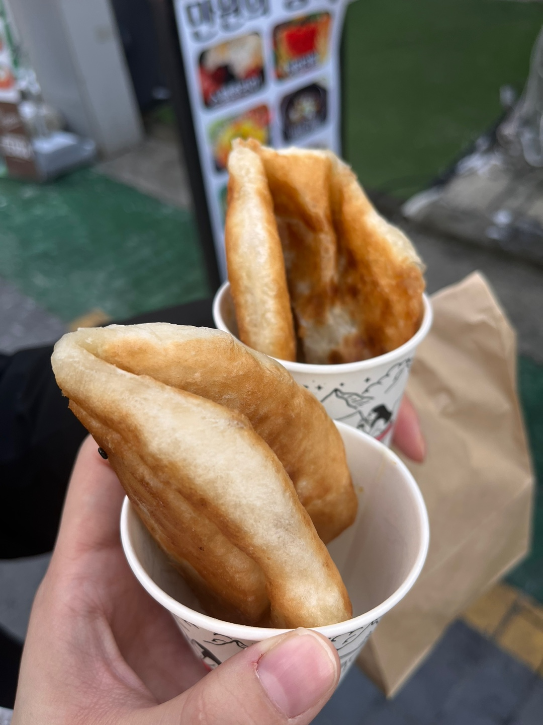 4개 6천원에 사서 2개는 종이컵에 하나씩 담아달라고 해서 먹으면서 가고,
