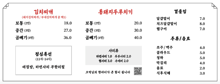 백채김치찌개에는 3가지 메뉴가 있는데요.