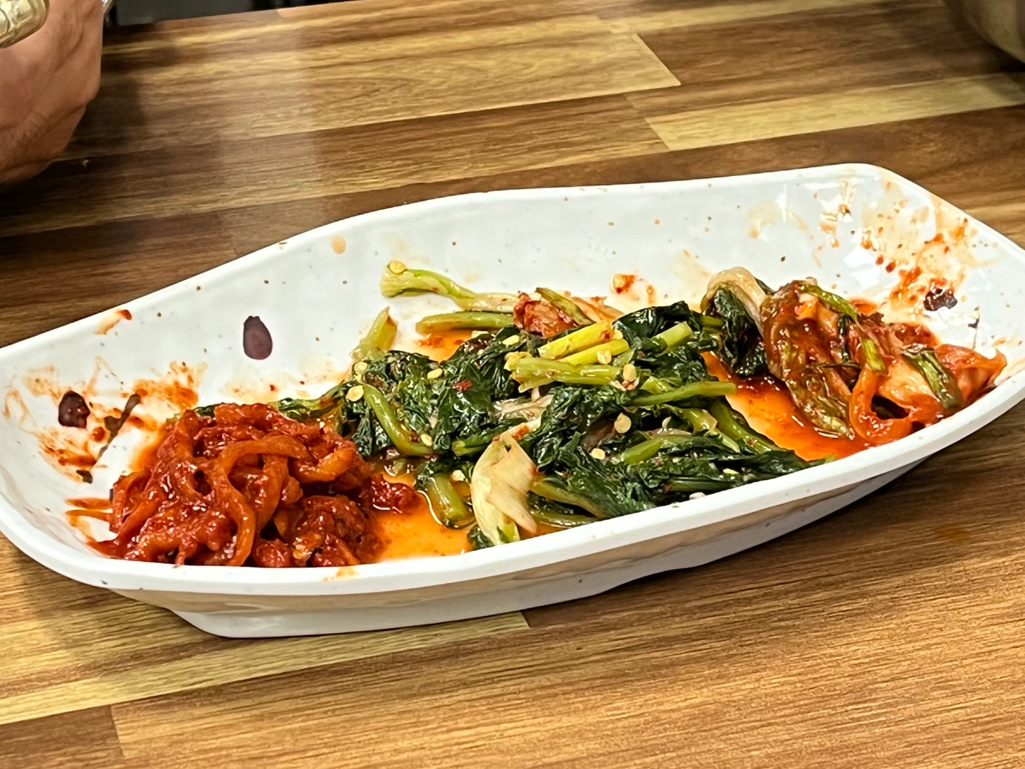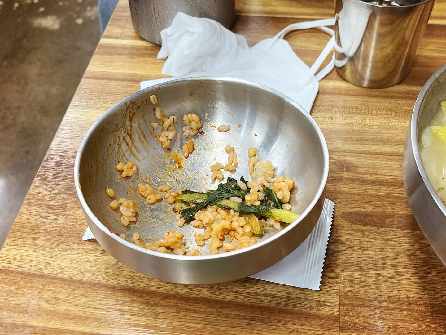 ㅎ 그리고 여기는 메뉴를 시키면 기본으로 김치 세 종류와 보리밥이 나옵니다. 김치는 열무김치 빼고는 종류를 잘 모르겠는데, 일반적인 배추김치나 깍두기는 아니에요. 보리밥엔 열무김치와 장을 넣어서 비벼서 먹습니다. 배고파서 먹느라고 거의 다 먹고서야 사진을 찍어서 이모양이네요ㅎㅎ 면을 시켰는데, 보리밥까지 나오니까 양은 진짜 푸짐하다고 보면 됩니다. 다만 사람이 많아서 기다리는 시간이 좀 길 수 있고, 뜨겁게 나오기 때문에 천천히 드셔야 돼요!