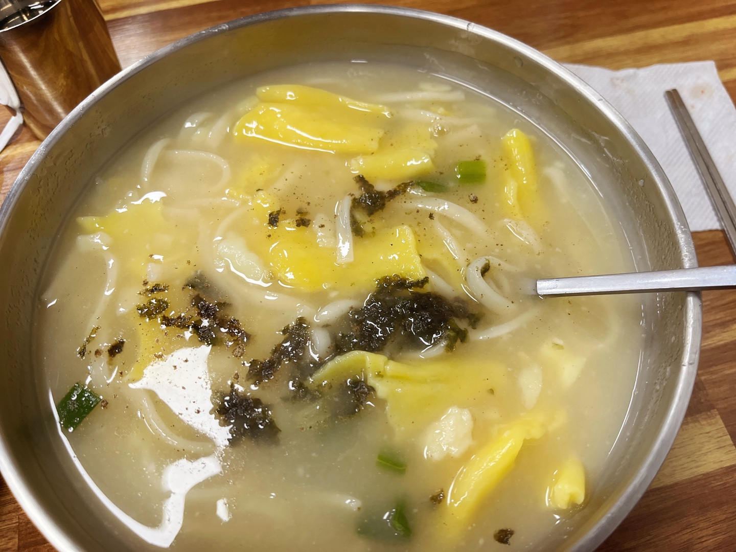 칼제비는 칼국수와 수제비가 함께 나오는 메뉴인데, 가격은 칼국수와 똑같이 8,000원입니다. 요즘 물가치곤 괜찮은 가격이죠? 수제비는 진짜 칼처럼 얇게 썰어져 나와서 식감이 정말 좋아요!! 저는 칼국수 대신 수제비만 나와도 좋을 거 같아요