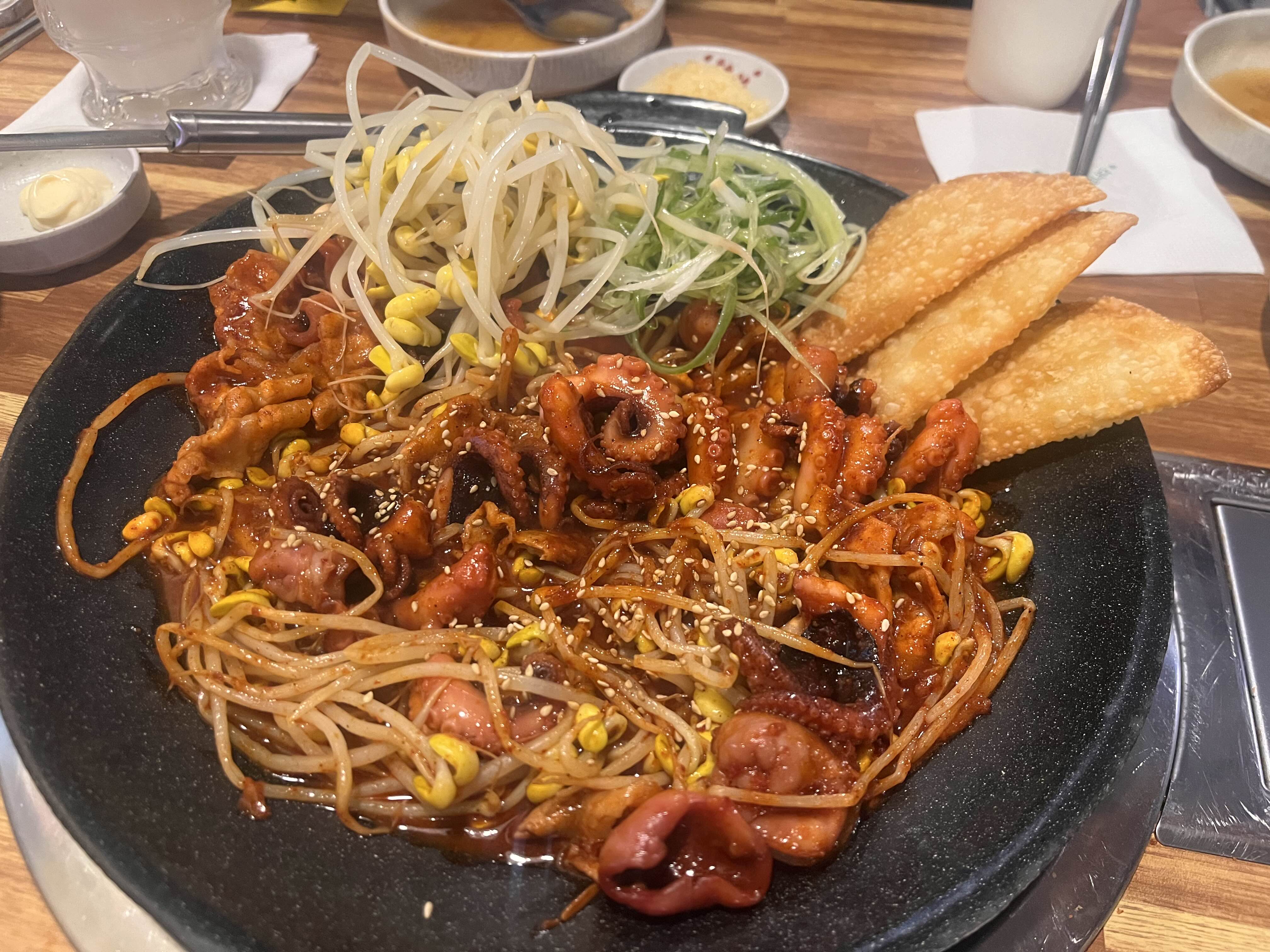 철판쭈꾸미를 시키면 콩나물과 파, 야끼만두가 같이 나오는데, 환상궁합이었어요. 너무 맛있어요👍👍