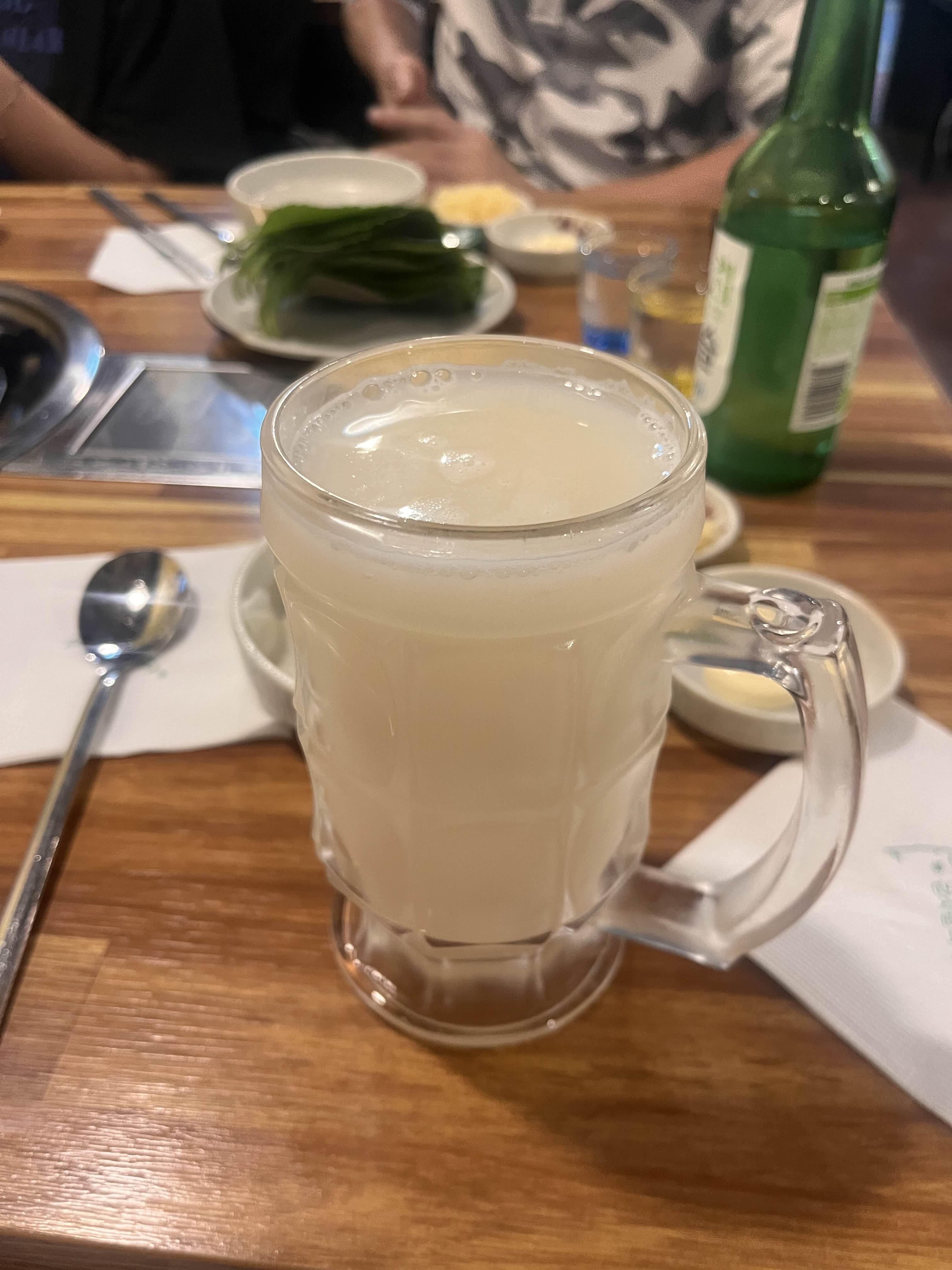 두 잔에 7,000원이라길래 시켜본 바나나막걸리 ㅎ