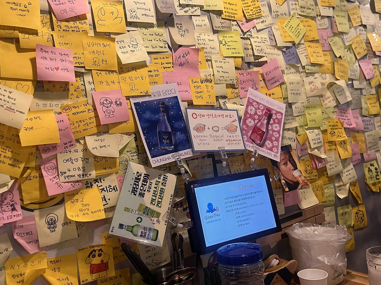 가게에 들어가면 벽에 가득한 포스트잇들과 맛깔나게 그려진 대표메뉴들이 눈에 띄는데요.