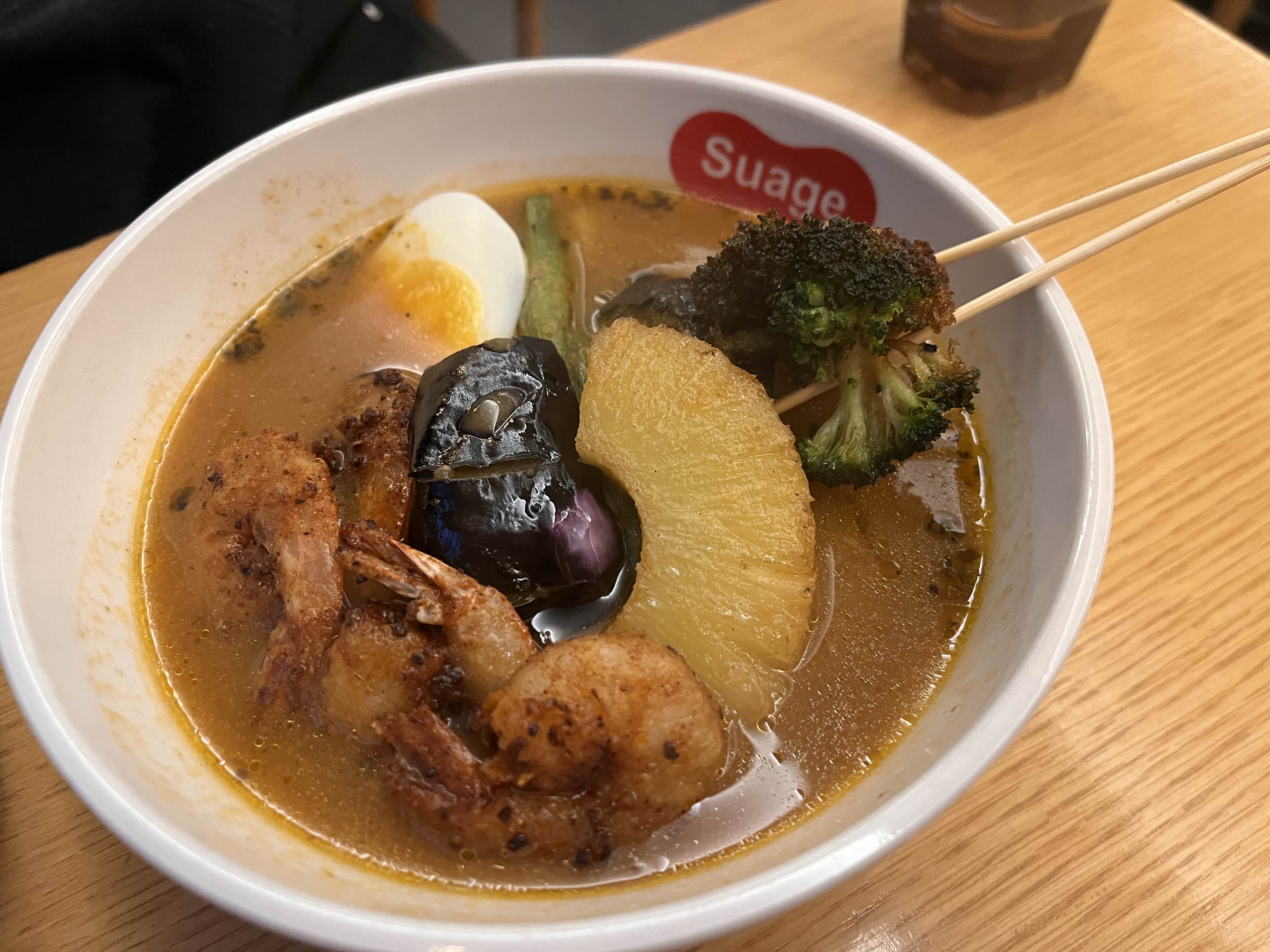 삿포로에서 제가 가장 좋아했던 음식, 한국에 들어오면 당연히 잘 팔릴거라 생각했던 음식 1위는 스프카레인데요. 향신료와 여러 육수들의 조화로 감칠맛을 제개로 낸 국물타입의 카레에 신선한 야채와 고기를 알맞게 조리해서 담아낸 요리입니다. 홋카이도 어딜 가든 먹을 수 있은 음식인데, 제가 제일 좋아하는 스프카레 브랜드는 “사무라이”이지만, 여기 스아게도 유명한 스프카레 음식점들 중 하나였어요. 그 맛이 그리워 인터넷에서 찾아보니, 스프카레를 메인으로 팔고 있는 곳이 몇 군데 나왔는데요. 이번에 갔던 [스아게]가 그 중 세 번째 방문한 곳이었어요. 그 전에 갔던 [스스키노 신사점]과 합정역 근처에 있는 [카레시]는 솔직히 기대보다는 별로였는데요. 여기는 유명 스프카레점에서 직접 배우고 이름도 그대로 낸 만큼, 오리지널리티가 보존이 되어 있어서 좋았어요!