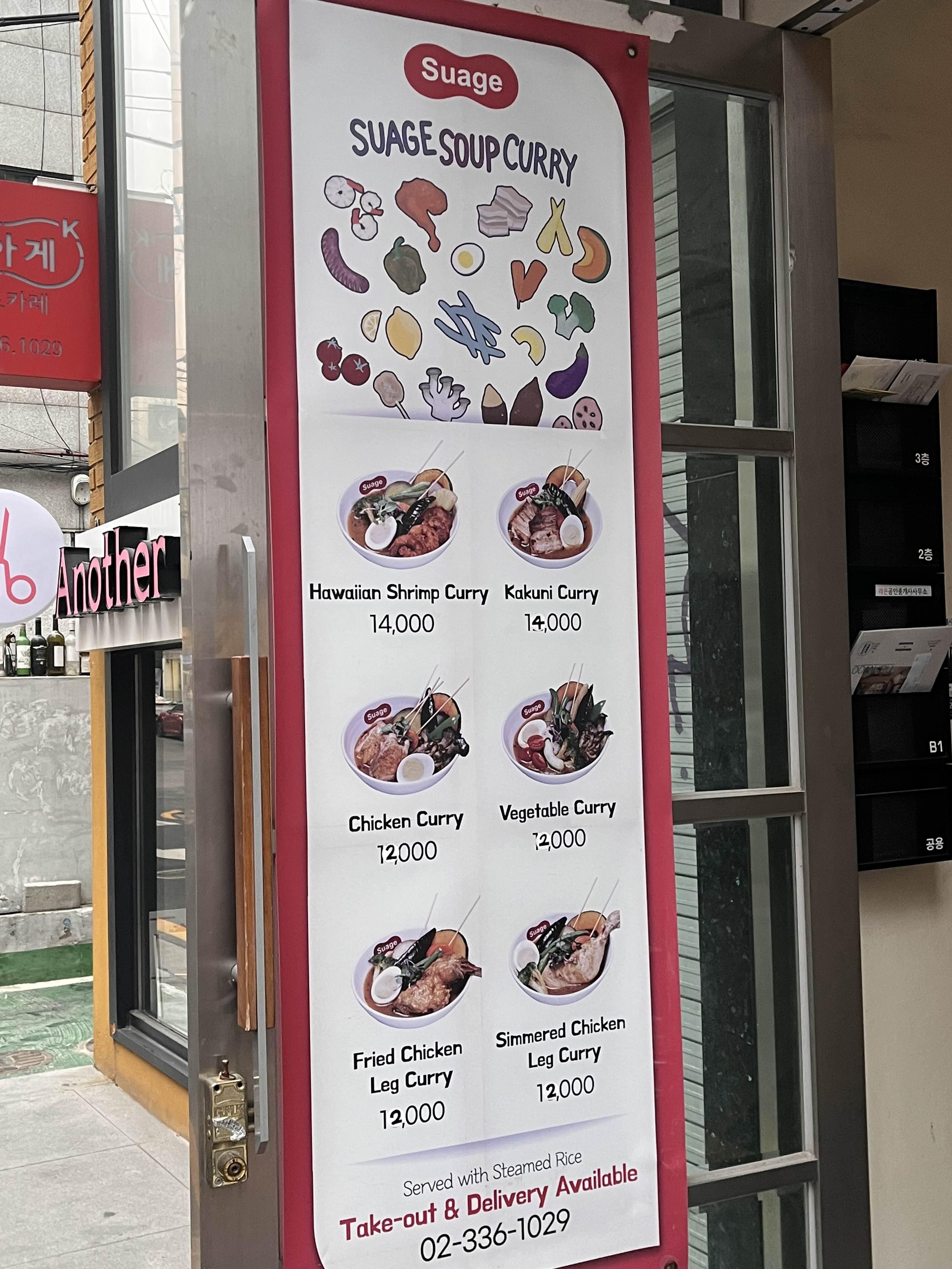 삿포로에서 제가 가장 좋아했던 음식, 한국에 들어오면 당연히 잘 팔릴거라 생각했던 음식 1위는 스프카레인데요. 향신료와 여러 육수들의 조화로 감칠맛을 제개로 낸 국물타입의 카레에 신선한 야채와 고기를 알맞게 조리해서 담아낸 요리입니다. 홋카이도 어딜 가든 먹을 수 있은 음식인데, 제가 제일 좋아하는 스프카레 브랜드는 “사무라이”이지만, 여기 스아게도 유명한 스프카레 음식점들 중 하나였어요. 그 맛이 그리워 인터넷에서 찾아보니, 스프카레를 메인으로 팔고 있는 곳이 몇 군데 나왔는데요. 이번에 갔던 [스아게]가 그 중 세 번째 방문한 곳이었어요. 그 전에 갔던 [스스키노 신사점]과 합정역 근처에 있는 [카레시]는 솔직히 기대보다는 별로였는데요. 여기는 유명 스프카레점에서 직접 배우고 이름도 그대로 낸 만큼, 오리지널리티가 보존이 되어 있어서 좋았어요!