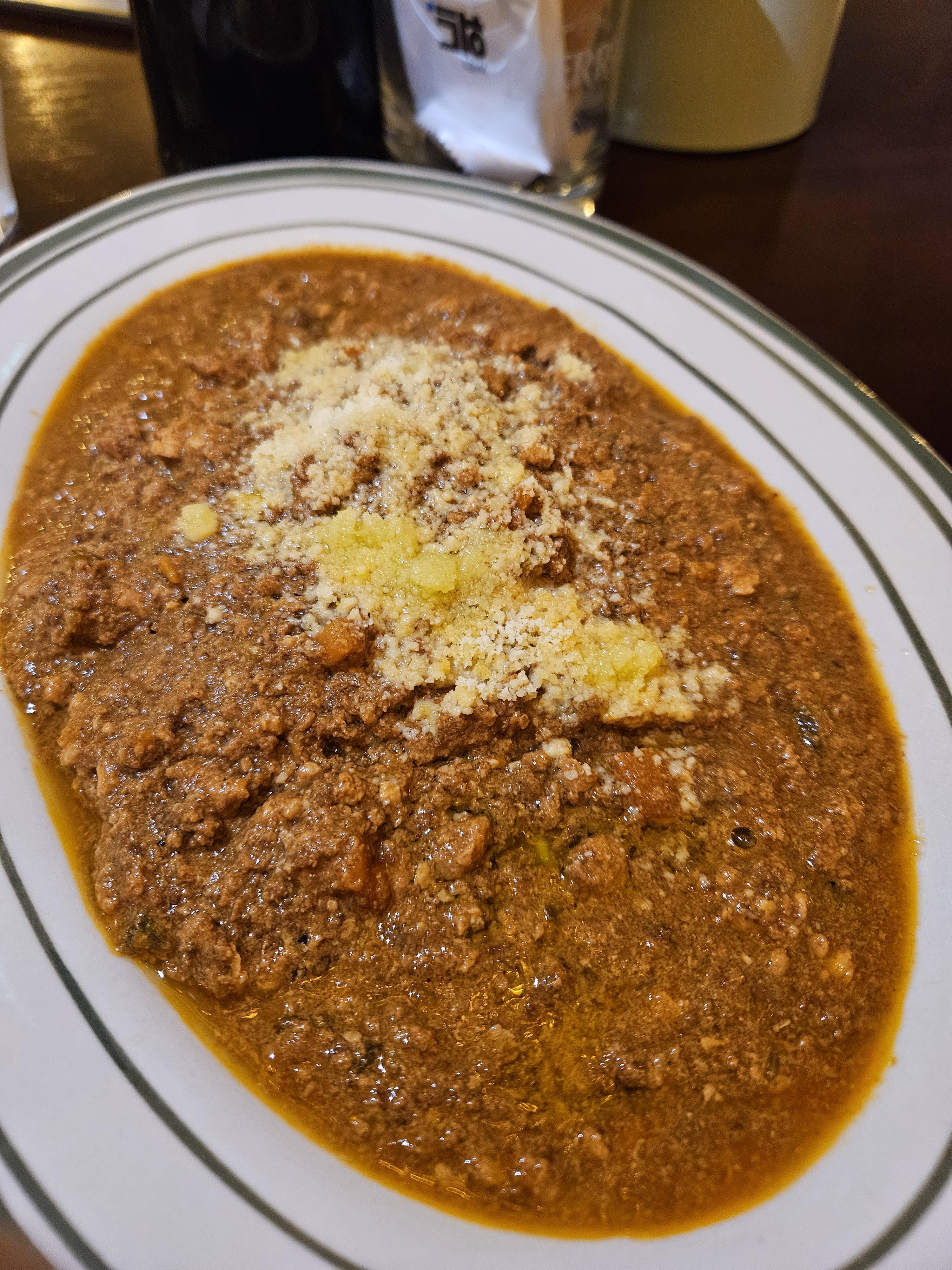 다만 볼로네제 소스는 고기가 그득한 푸짐한 소스에 치즈를 가미한 맛이라 감칠맛이 있어서