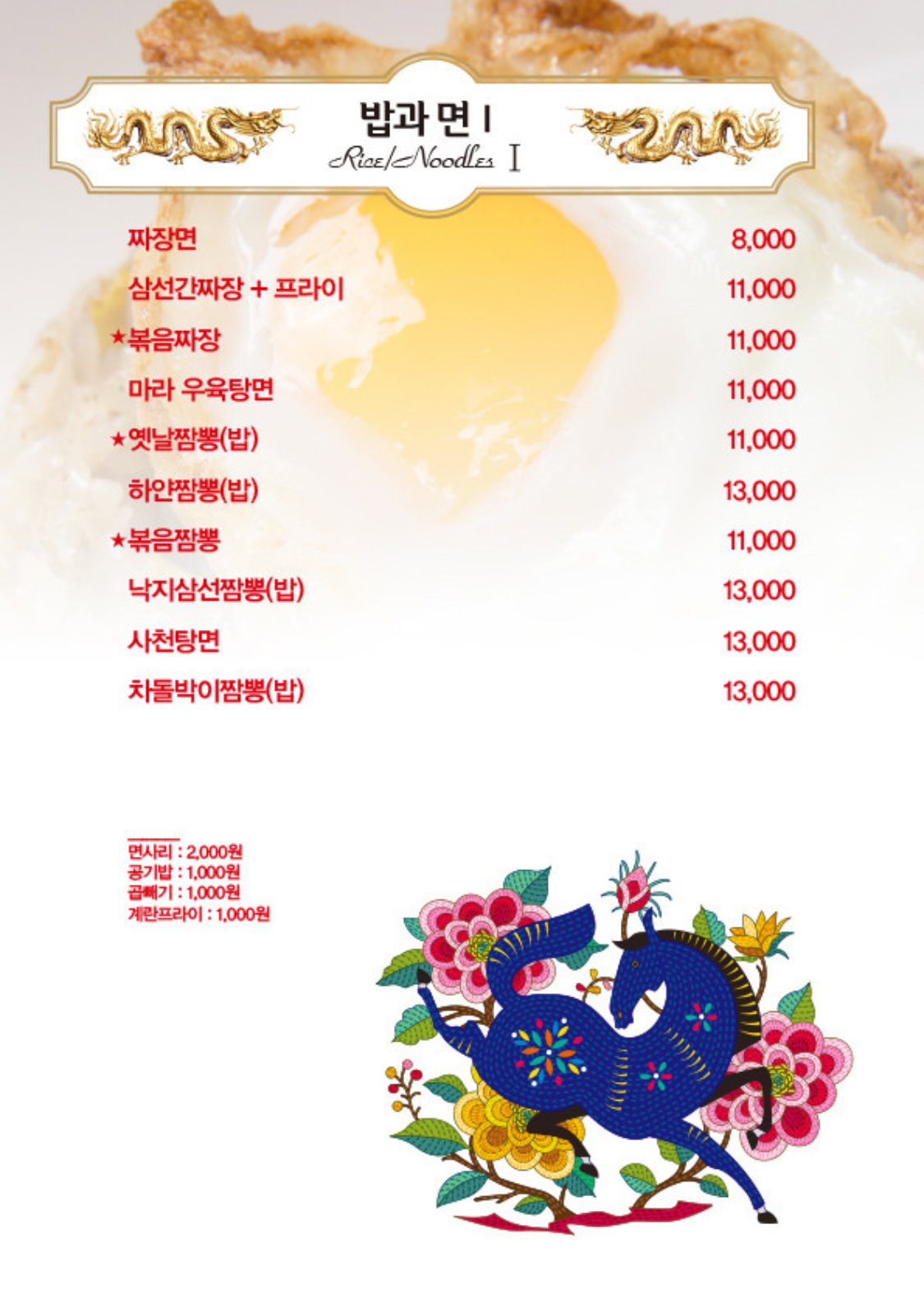 석촌역 7번출구에서 나와서 조금 내려오면 휘황찬란한 중식당이 하나 있는데요. 오전11시부터 오후2시반까지 8천원이라는 가격에 제육덮밥, 잡채밥, 볶음밥, 가지덮밥, 볶음짜장을 먹을 수 있다고 써있어서 한 번 가봐야지 가봐야지 했었는데, 항상 그 시간이 지나서 지나쳤었어요 ㅎㅎ 이번에 처음 갔을 때도 그 시간은 지나 있었지만 짜장면이 땡겨서 들어가봤어요~