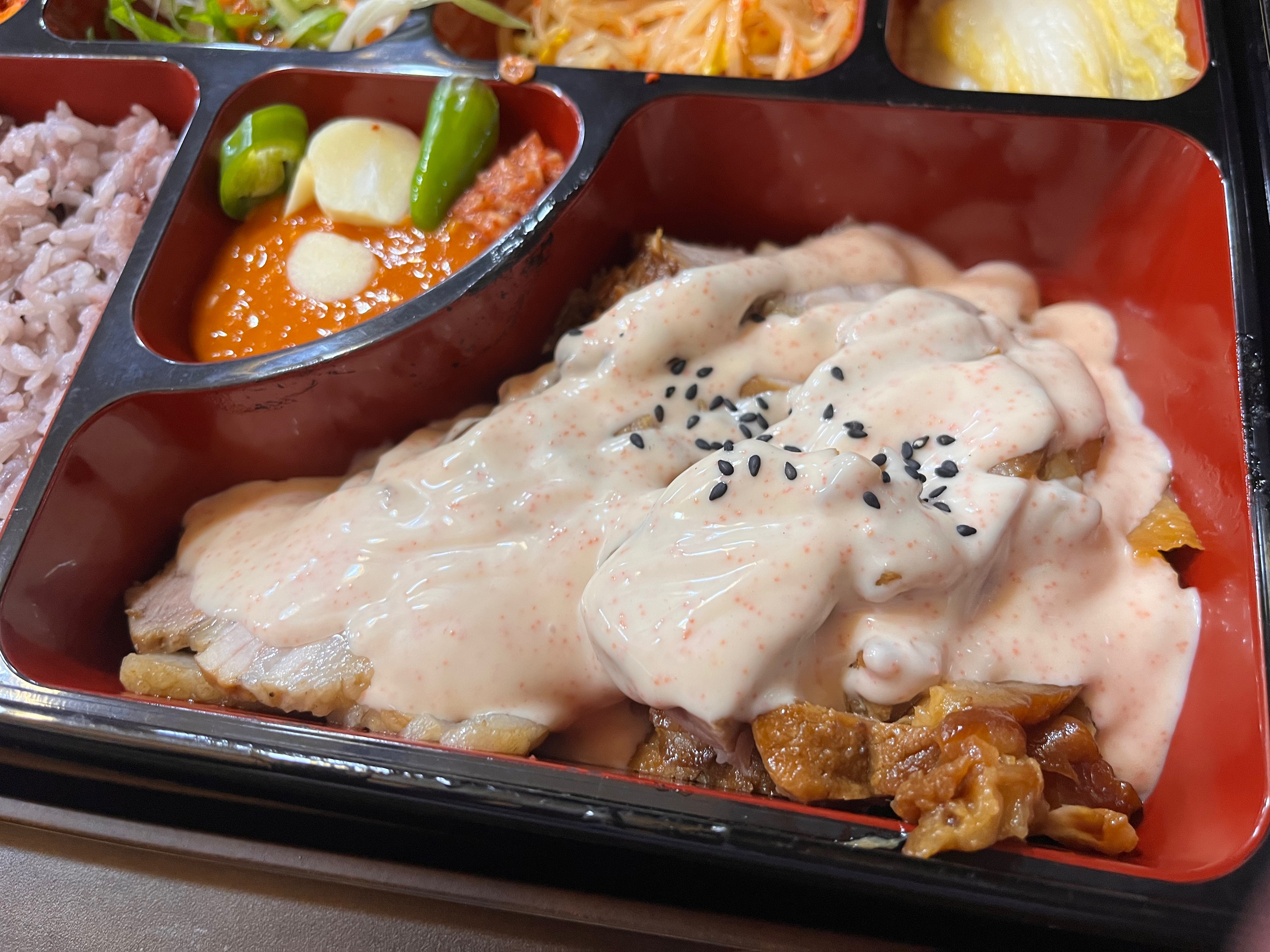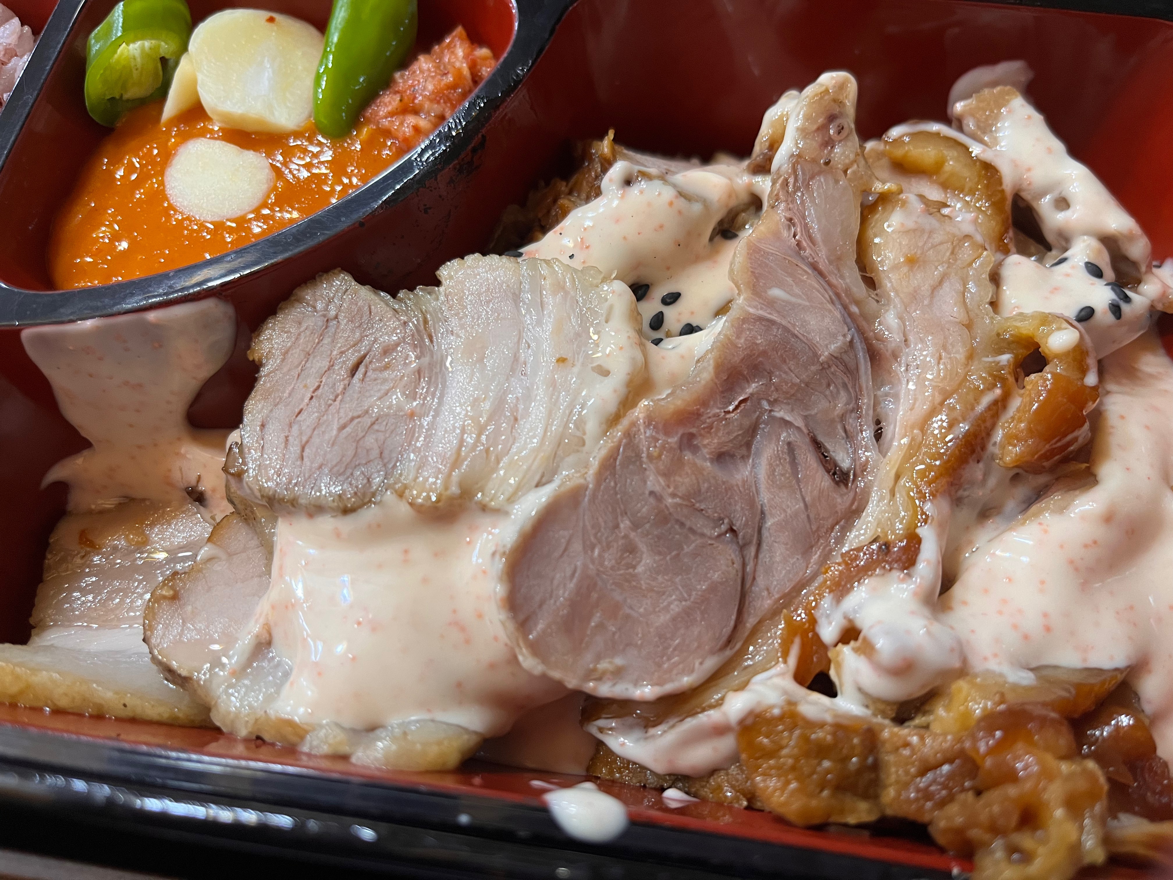 족발과 보쌈에 명란마요소스가 뿌려져 나오는데,