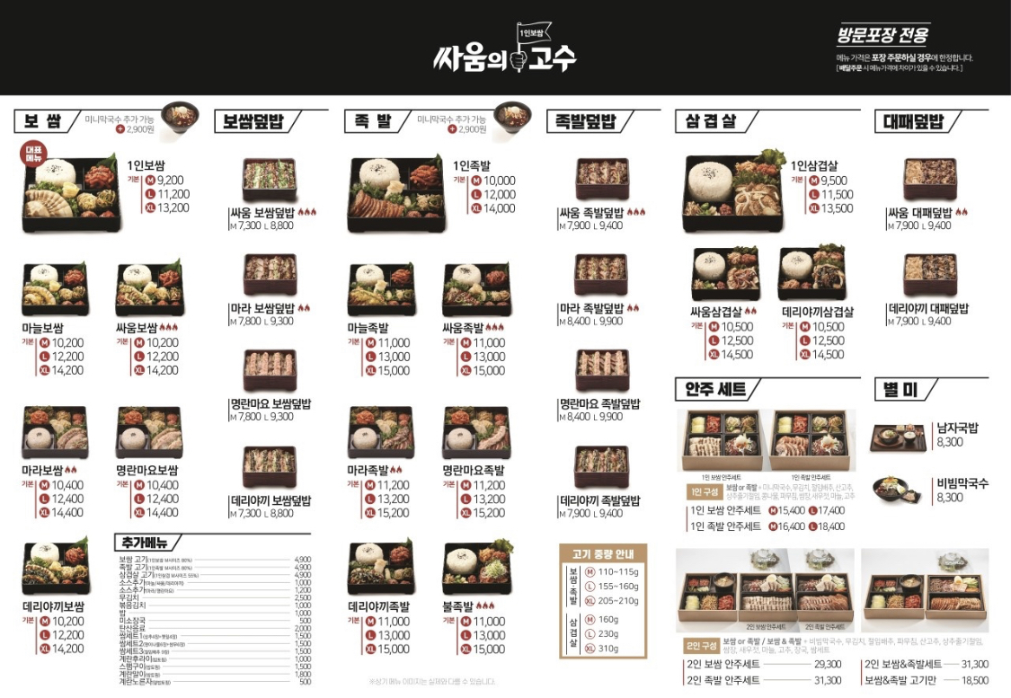 족발과 보쌈은 소짜만 해도 3만원대로 시작하니까 혼자 시켜 먹기에는 부담스러운 메뉴인데, 요즘은 족발도 그렇고 보쌈도 그렇고 1인 혼밥메뉴를 제공하는 곳이 배달을 중심으로 많아지고 있는 거 같아요.