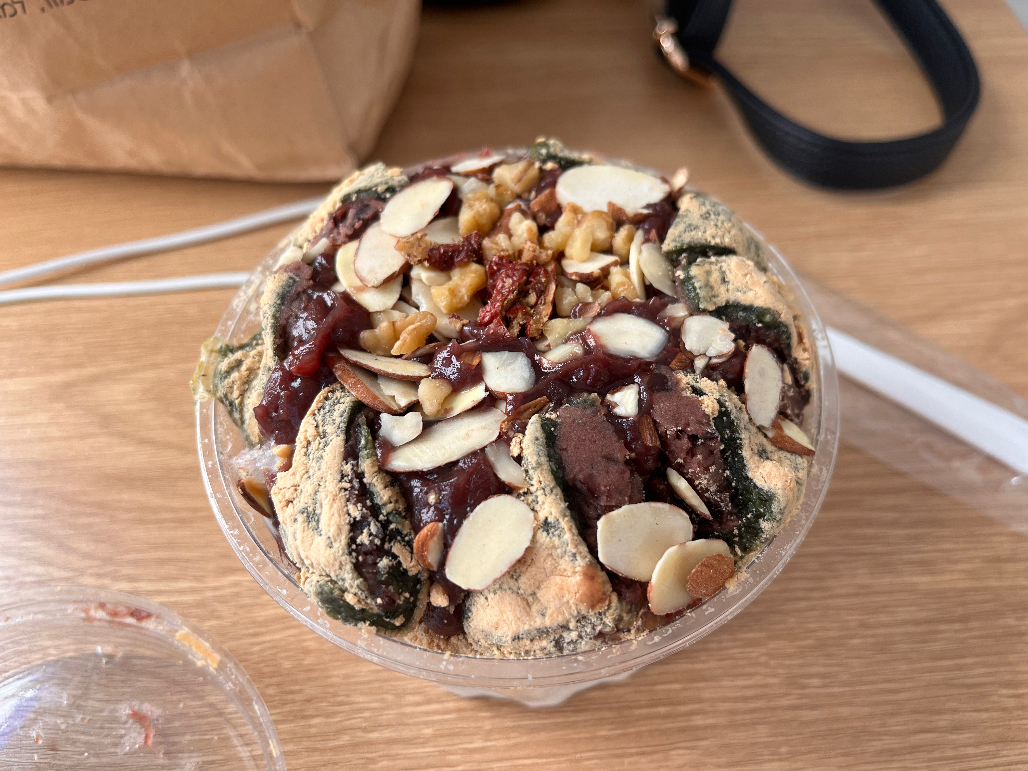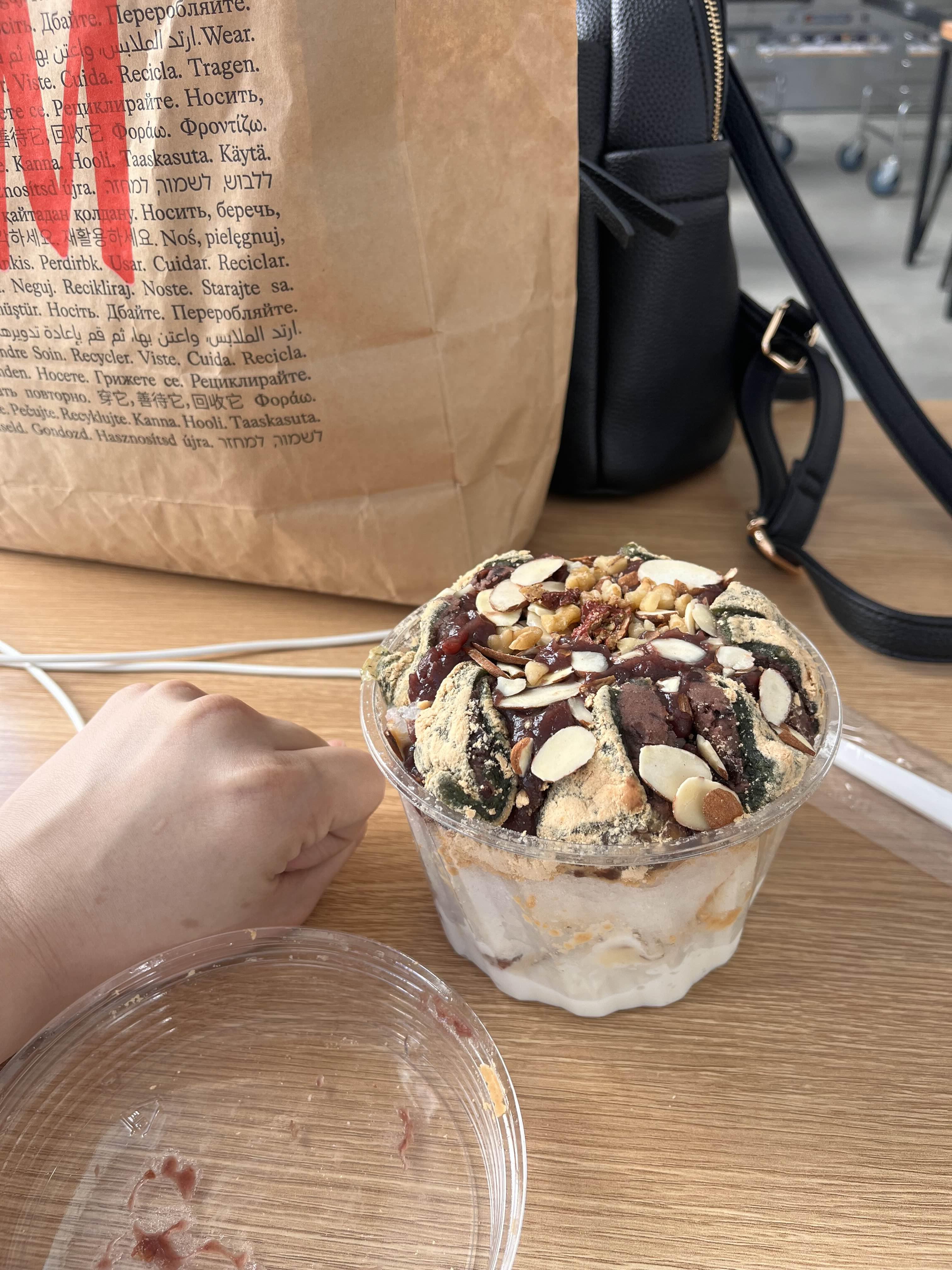 크기는 요정도인데, 쑥떡의 볼륨감과 그득 담아주신 견과류, 부드러운 우유빙수가 말그대로 찰떡이었어요 ㅎㅎ