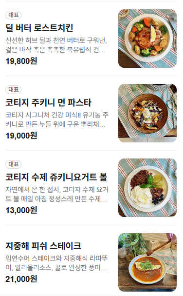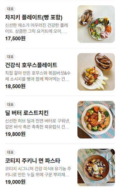 시그니처로는 "차지키 플레이트(빵포함) 17,500"와 "주키니 면 파스타 19,000"를 추천 받았고