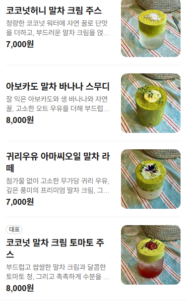 후에 "아보카도 말차 바나나 스무디 8,000"를 추가로 주문했어요.