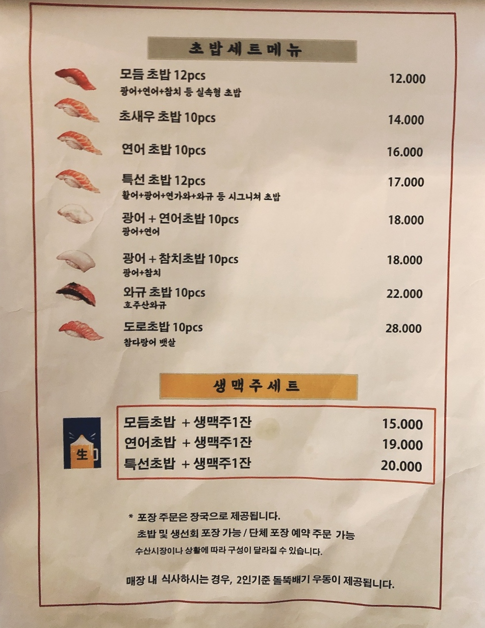 초밥의 생선부분이 큼지막하거나 길다는 느낌은 없었지만, 밥도 조금 들어있고(적당히?)